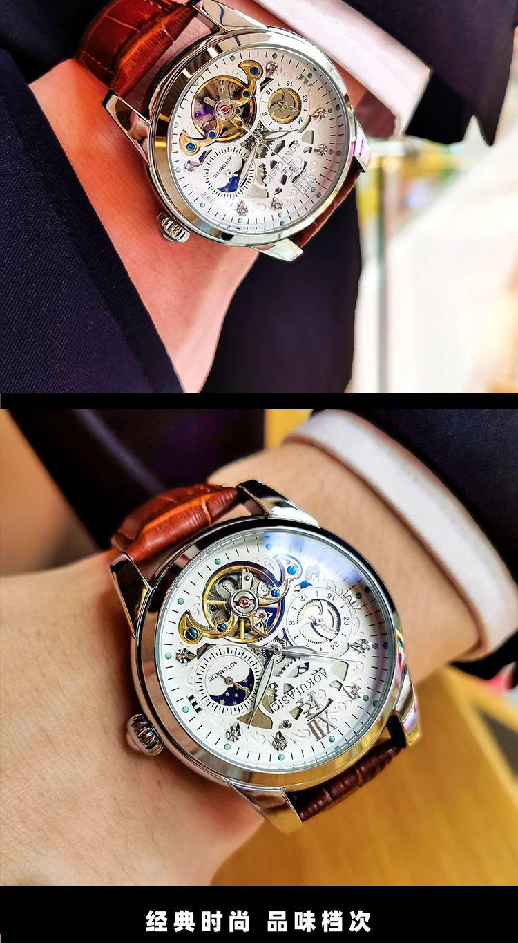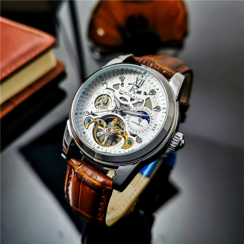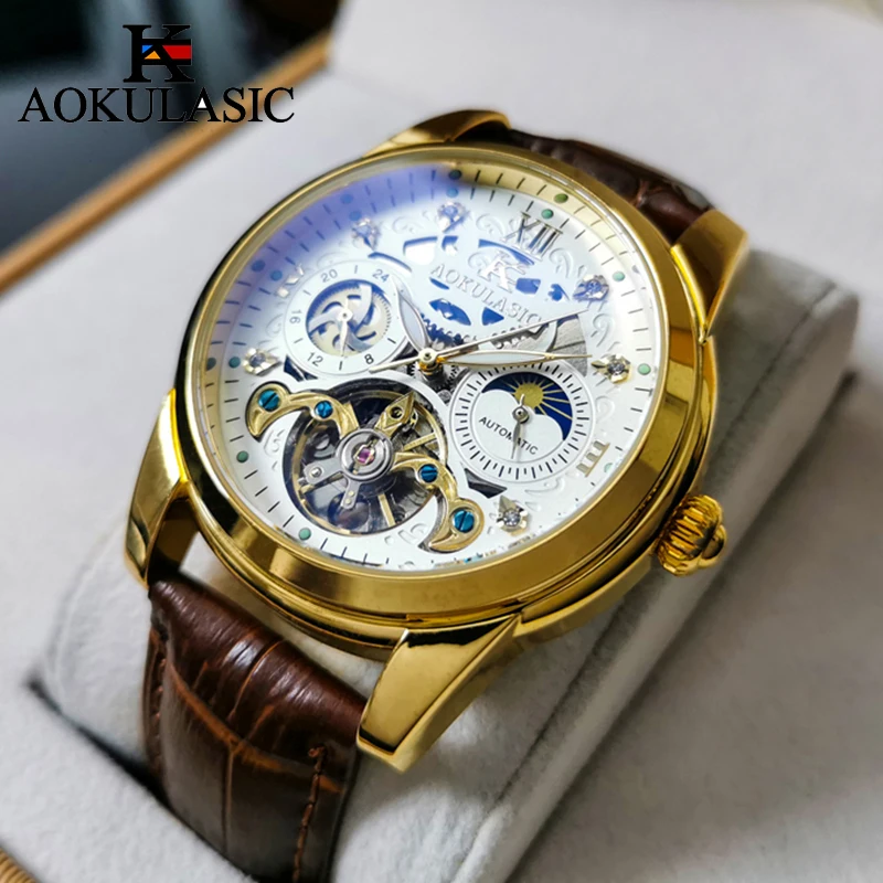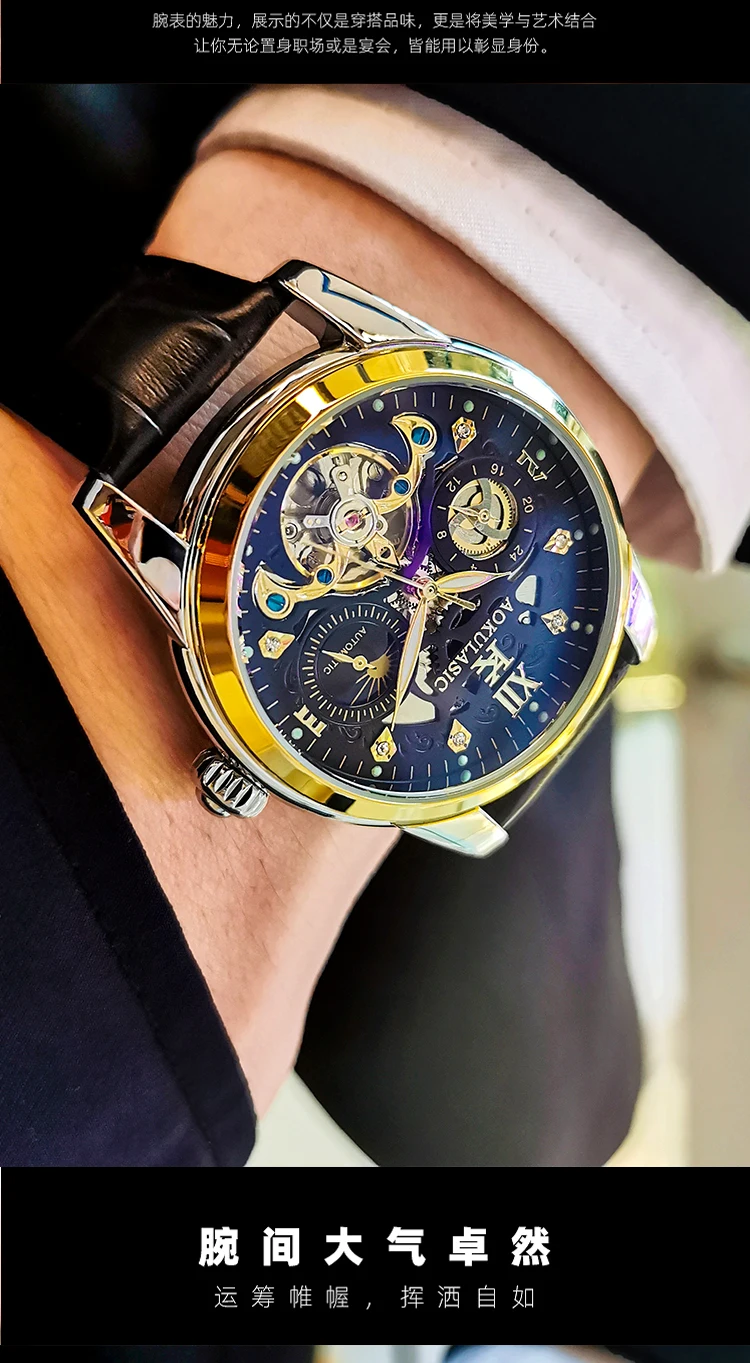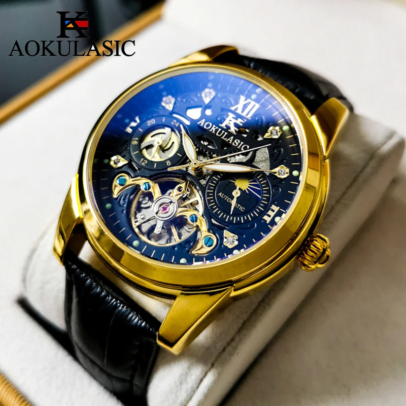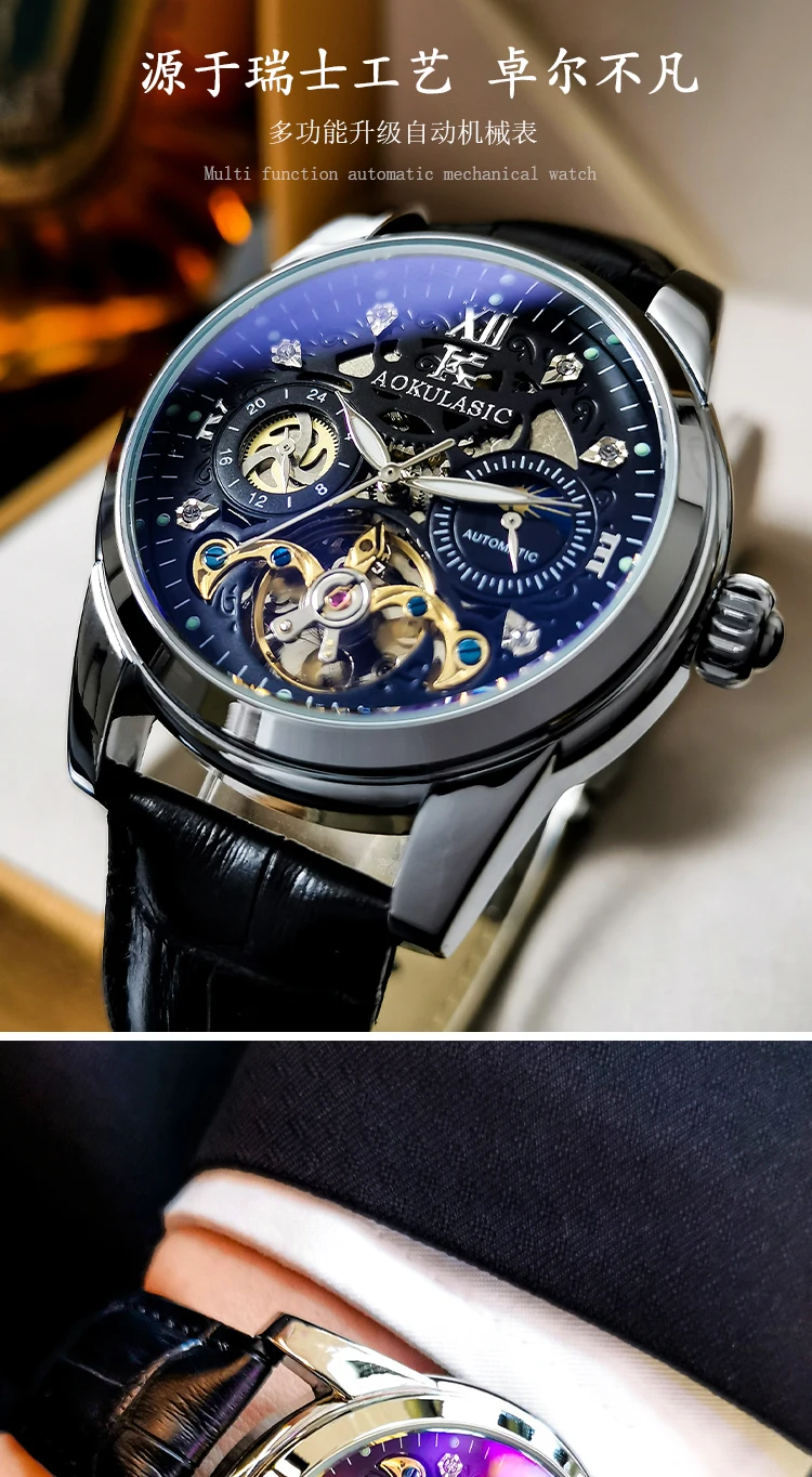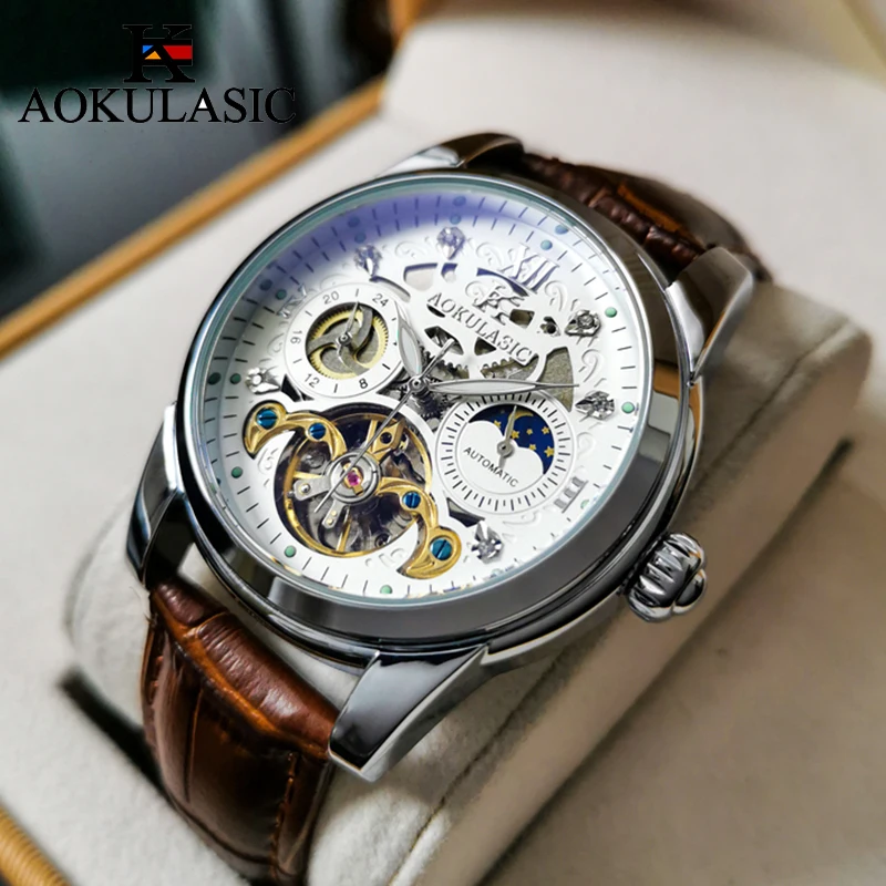 AOKULASIC Men’s Luxury Mechanical Watch – Leather, Tourbillon, Waterproof