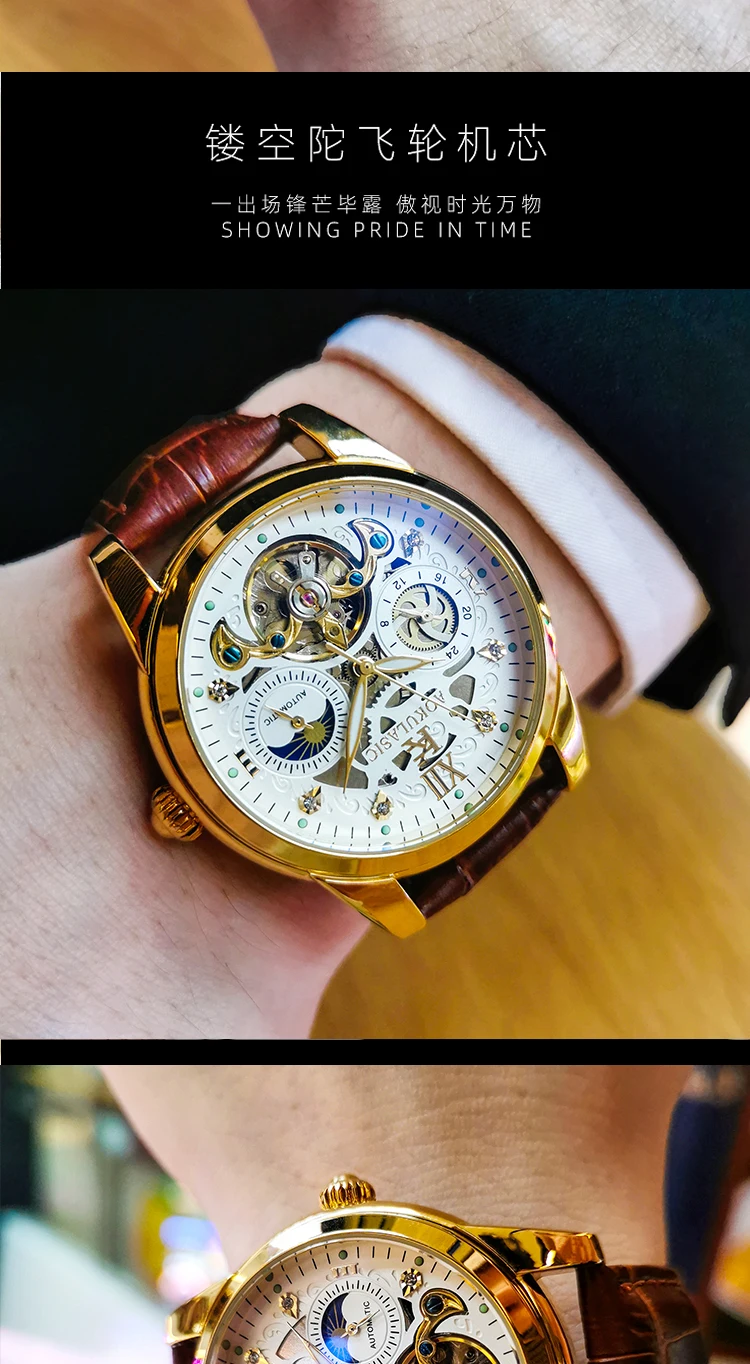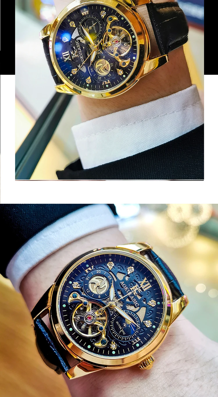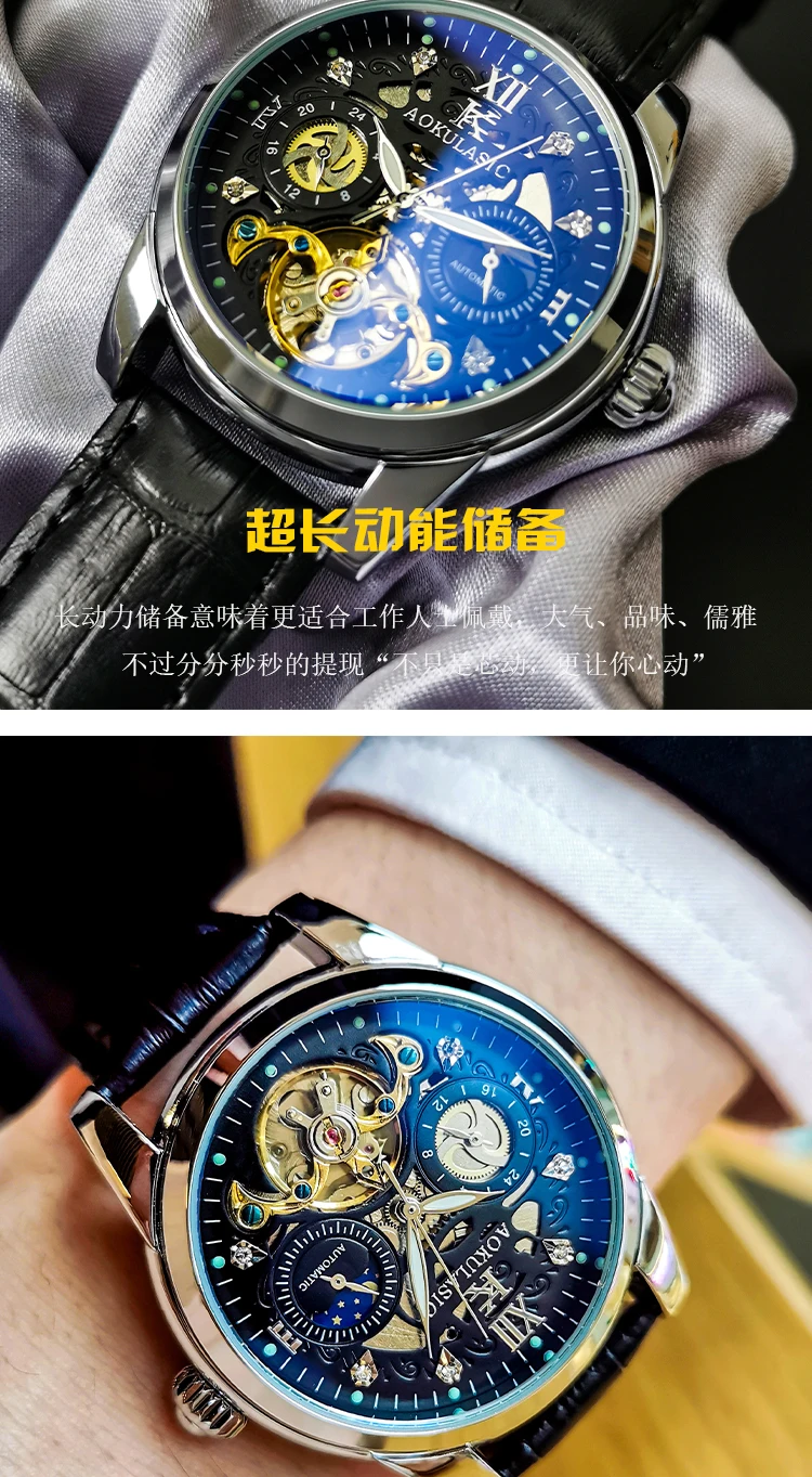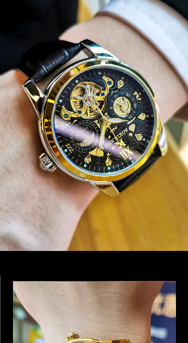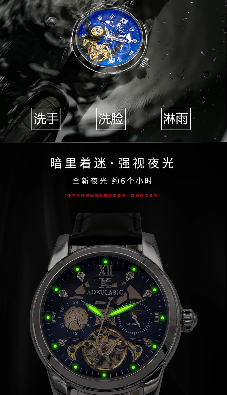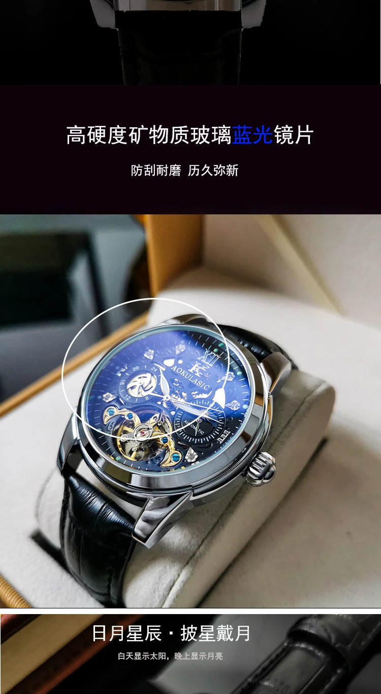 AOKULASIC Men’s Luxury Mechanical Watch – Leather, Tourbillon, Waterproof