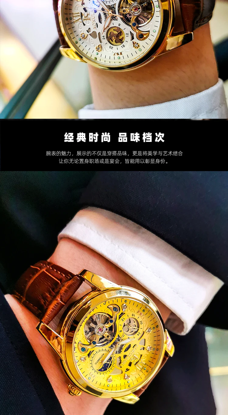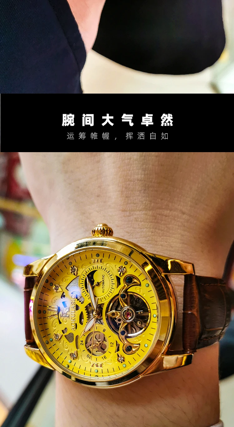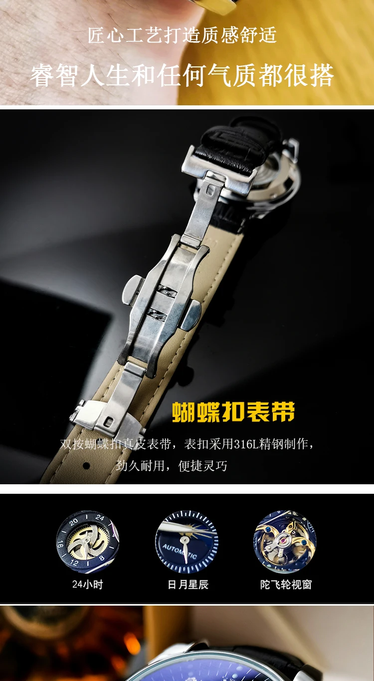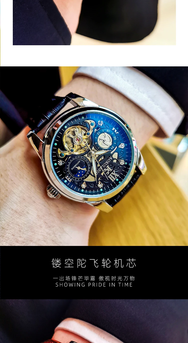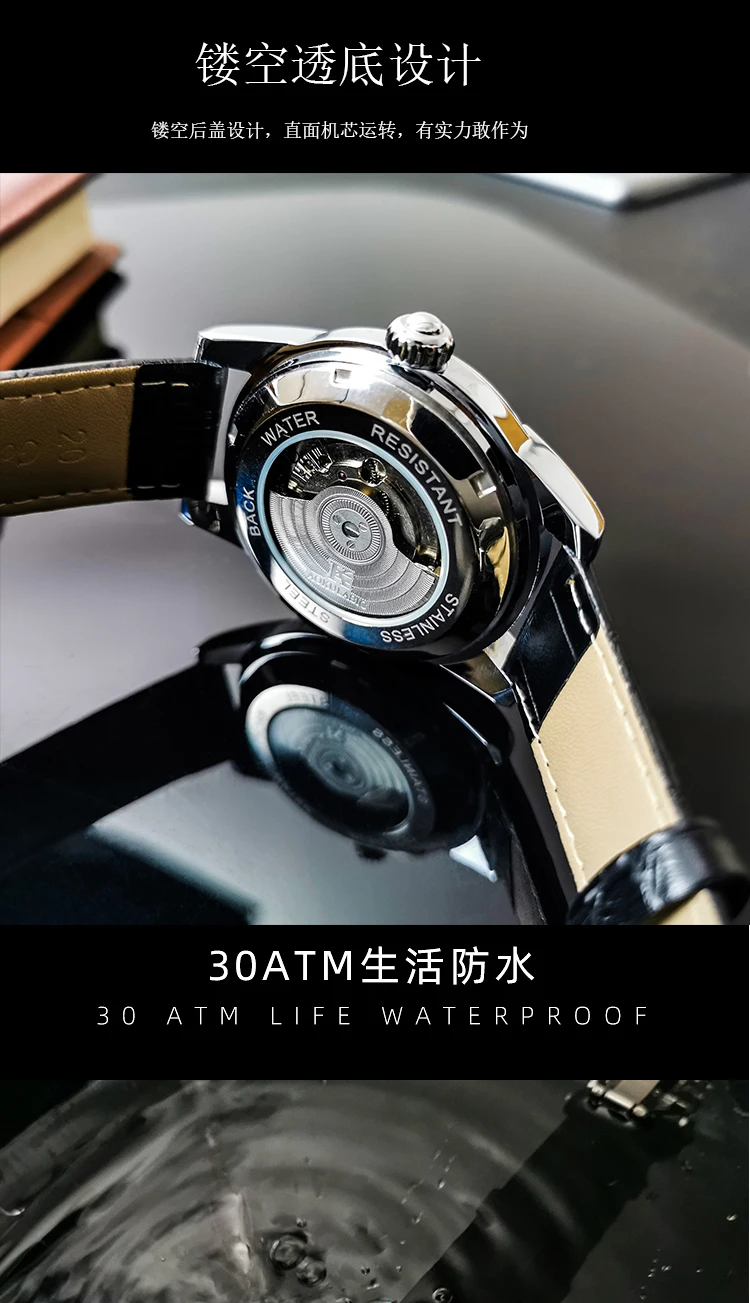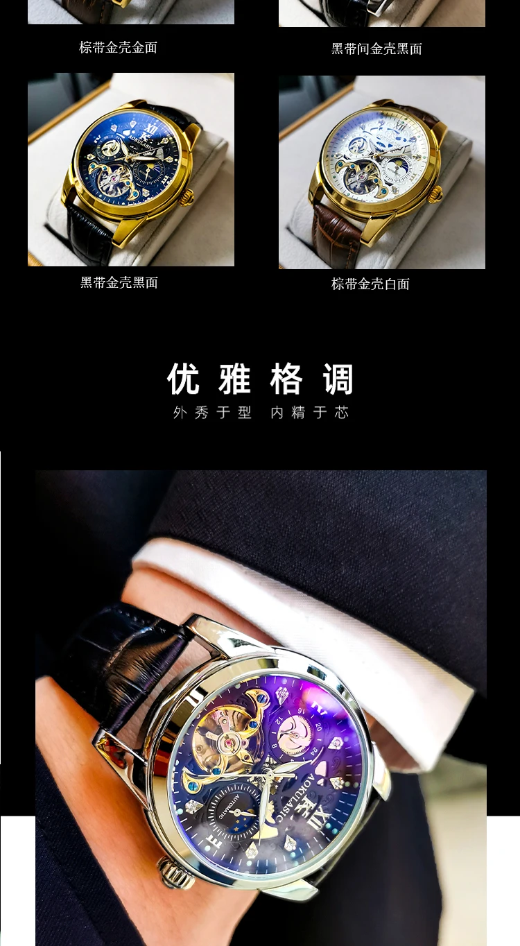 AOKULASIC Men’s Luxury Mechanical Watch – Leather, Tourbillon, Waterproof