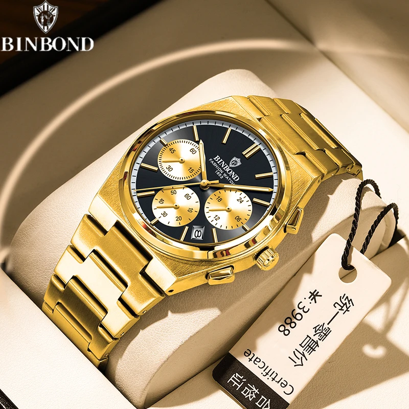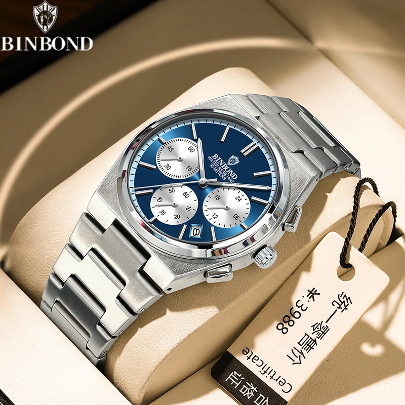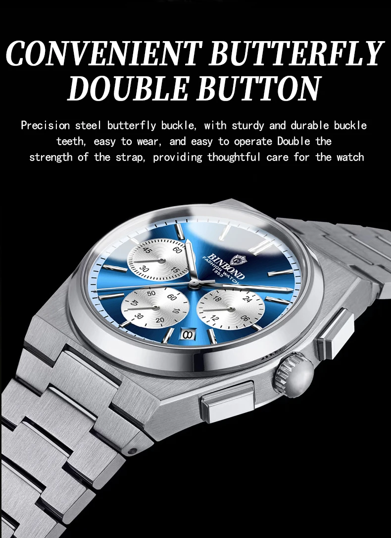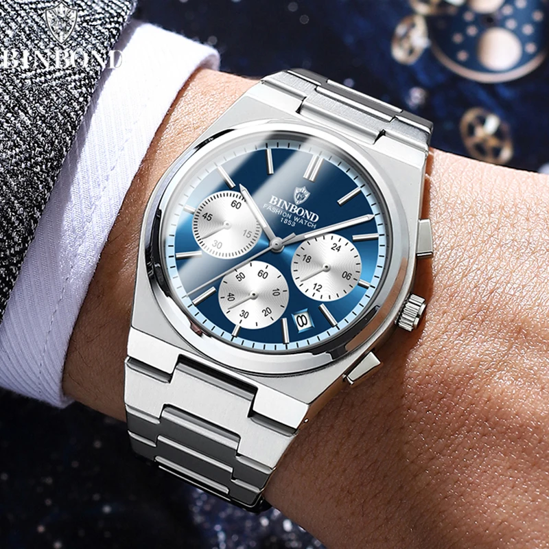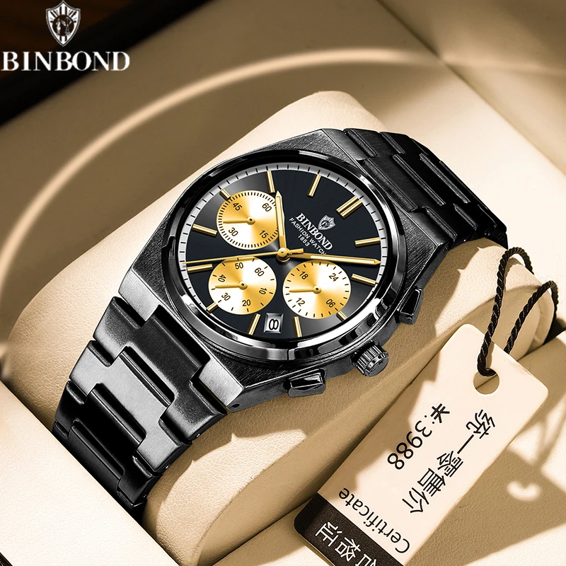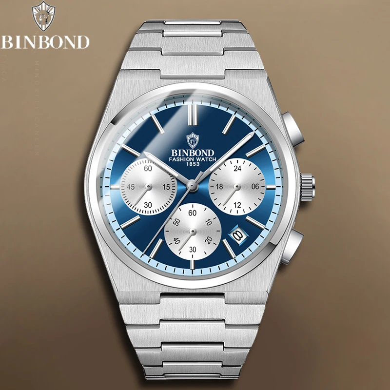BINBOND Men’s Luxury Watch – Chronograph, Waterproof, Stainless Steel