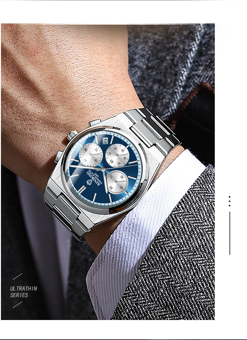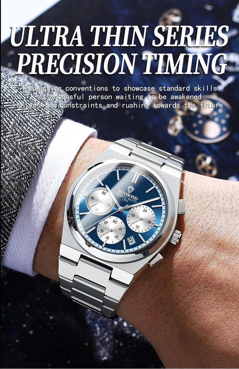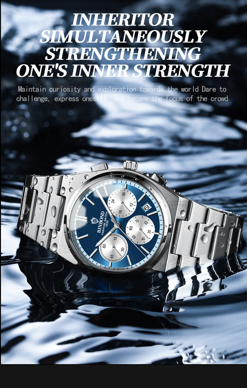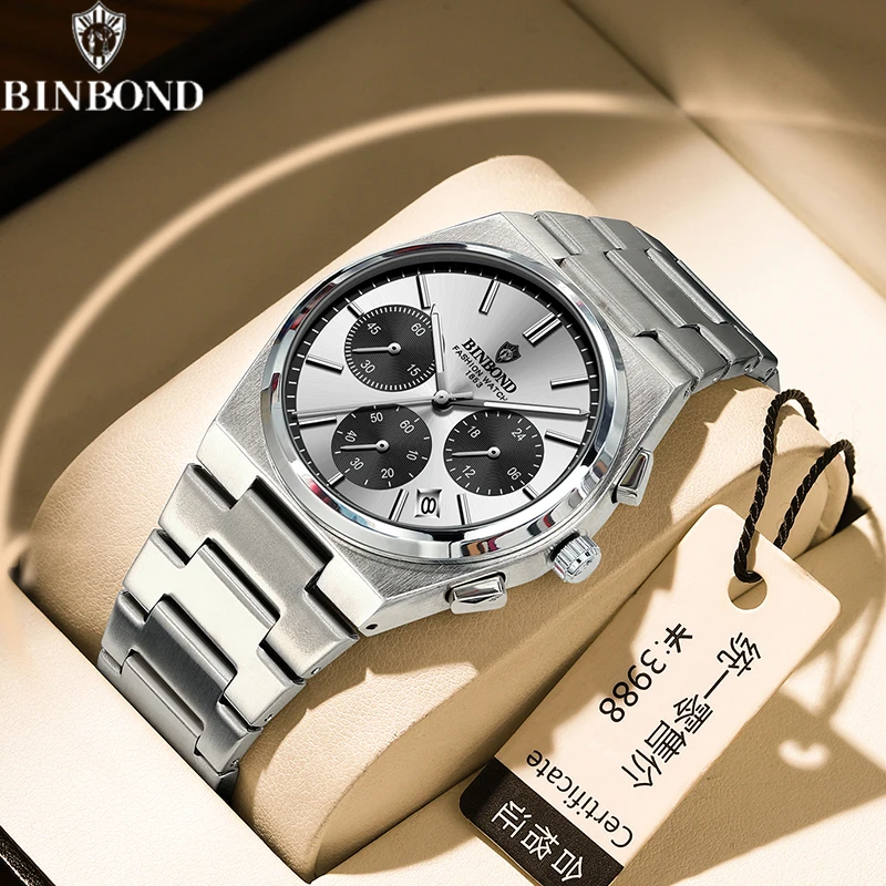BINBOND Men’s Luxury Watch – Chronograph, Waterproof, Stainless Steel