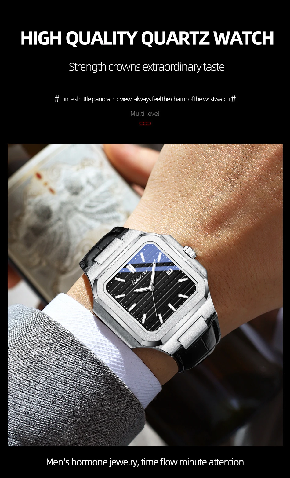 CHENXI Men’s Square Watch β Leather, Quartz, Waterproof, Luminous