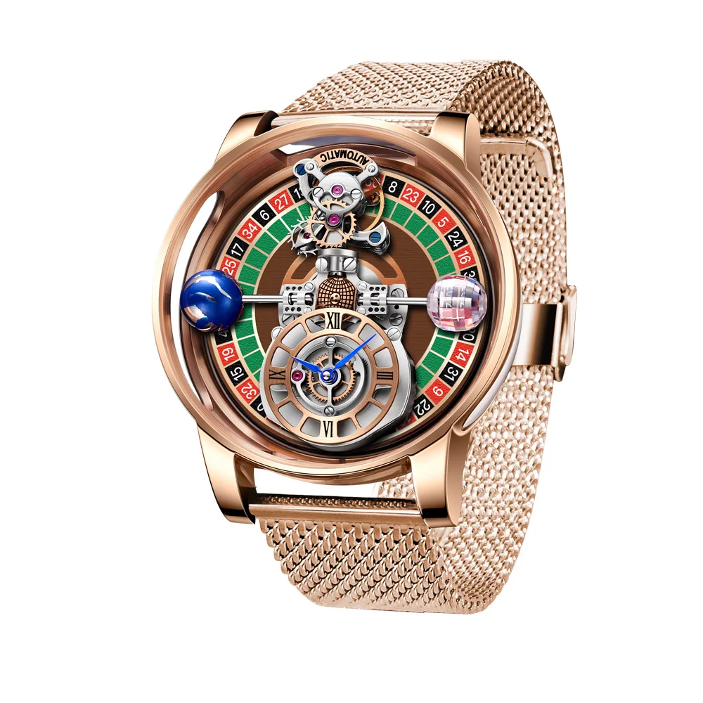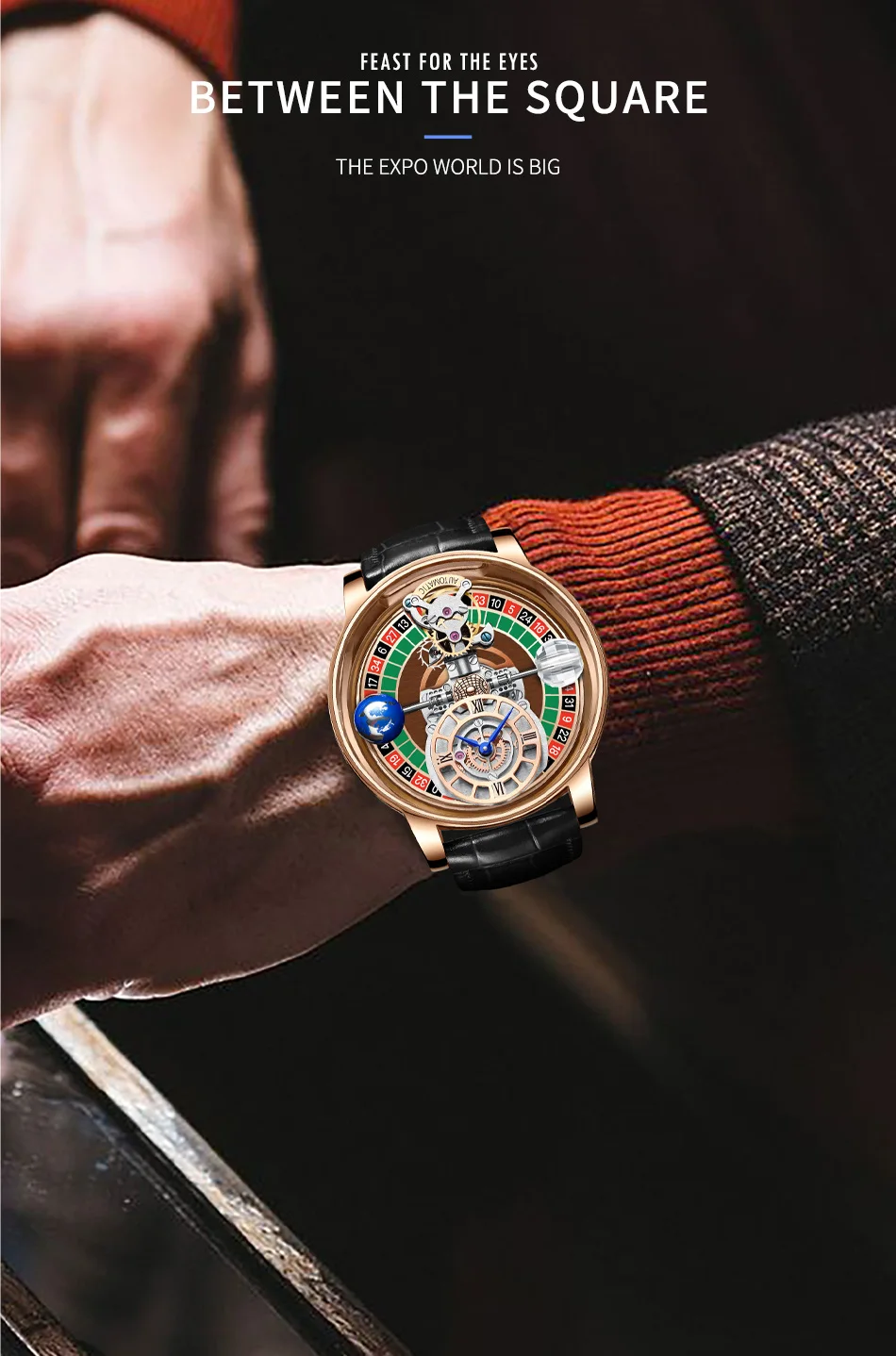 HAEMMER Men’s Watch – Transparent Roulette Design, Quartz, Leather
