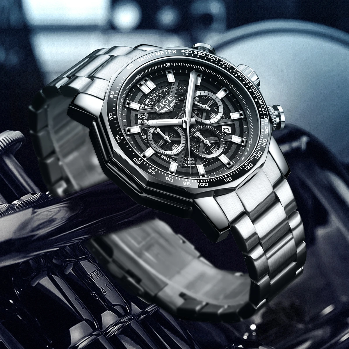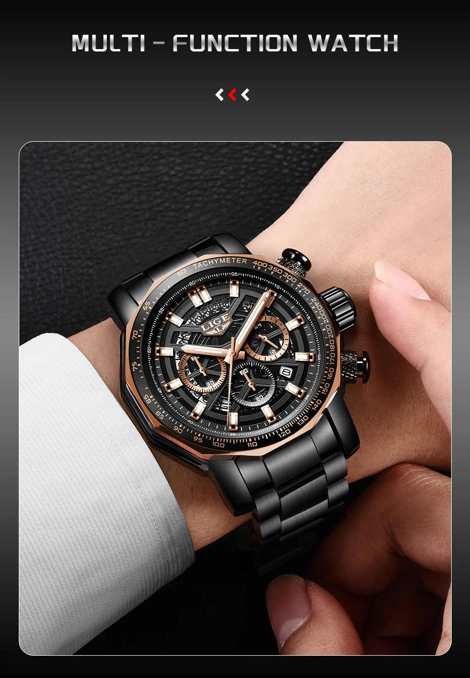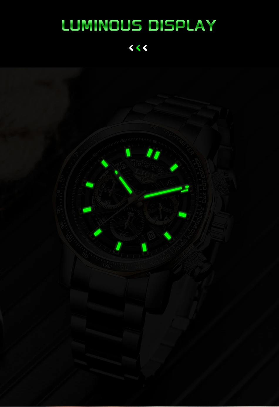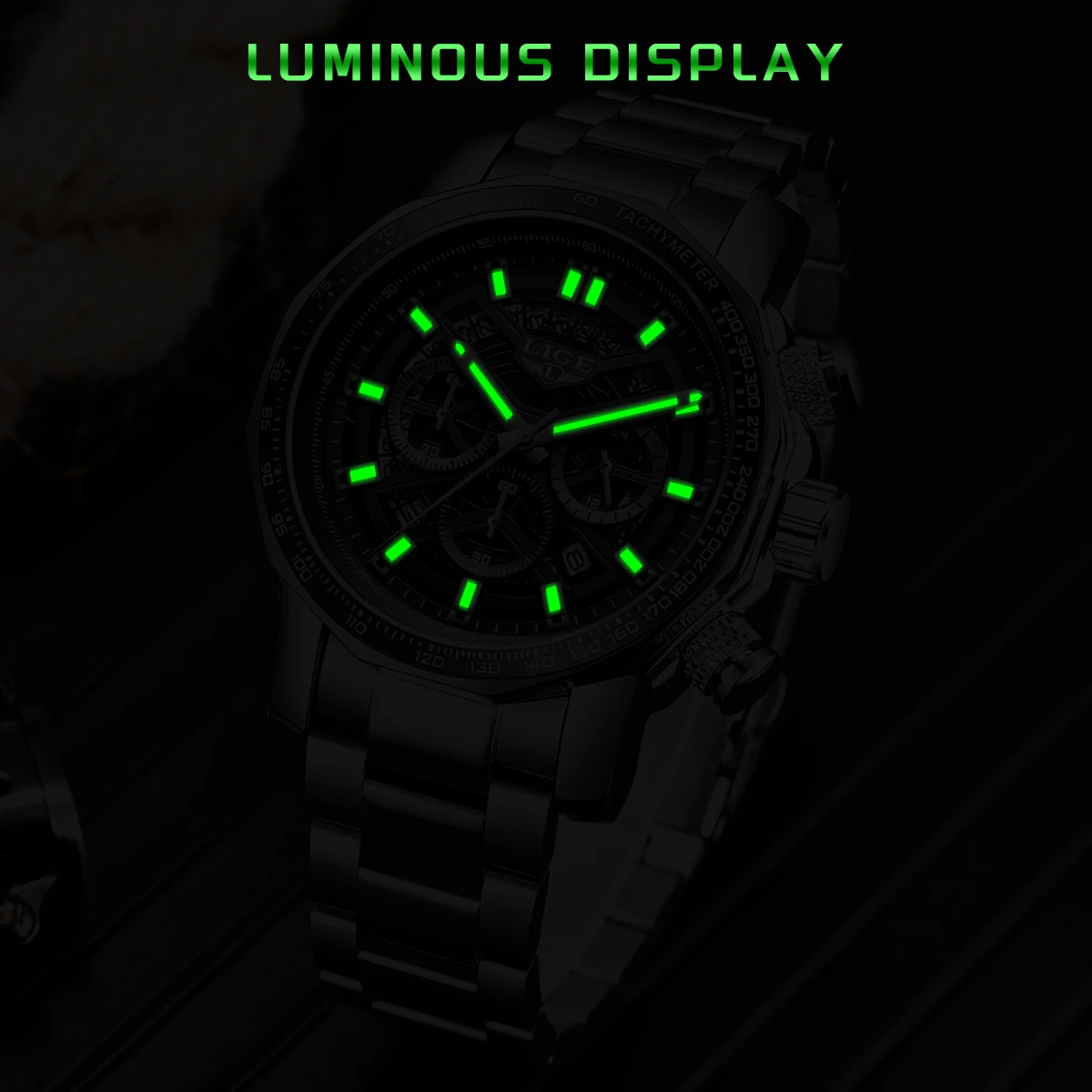 LIGE 2025 Men’s Luxury Watch – Golden Chronograph with Gift Box
