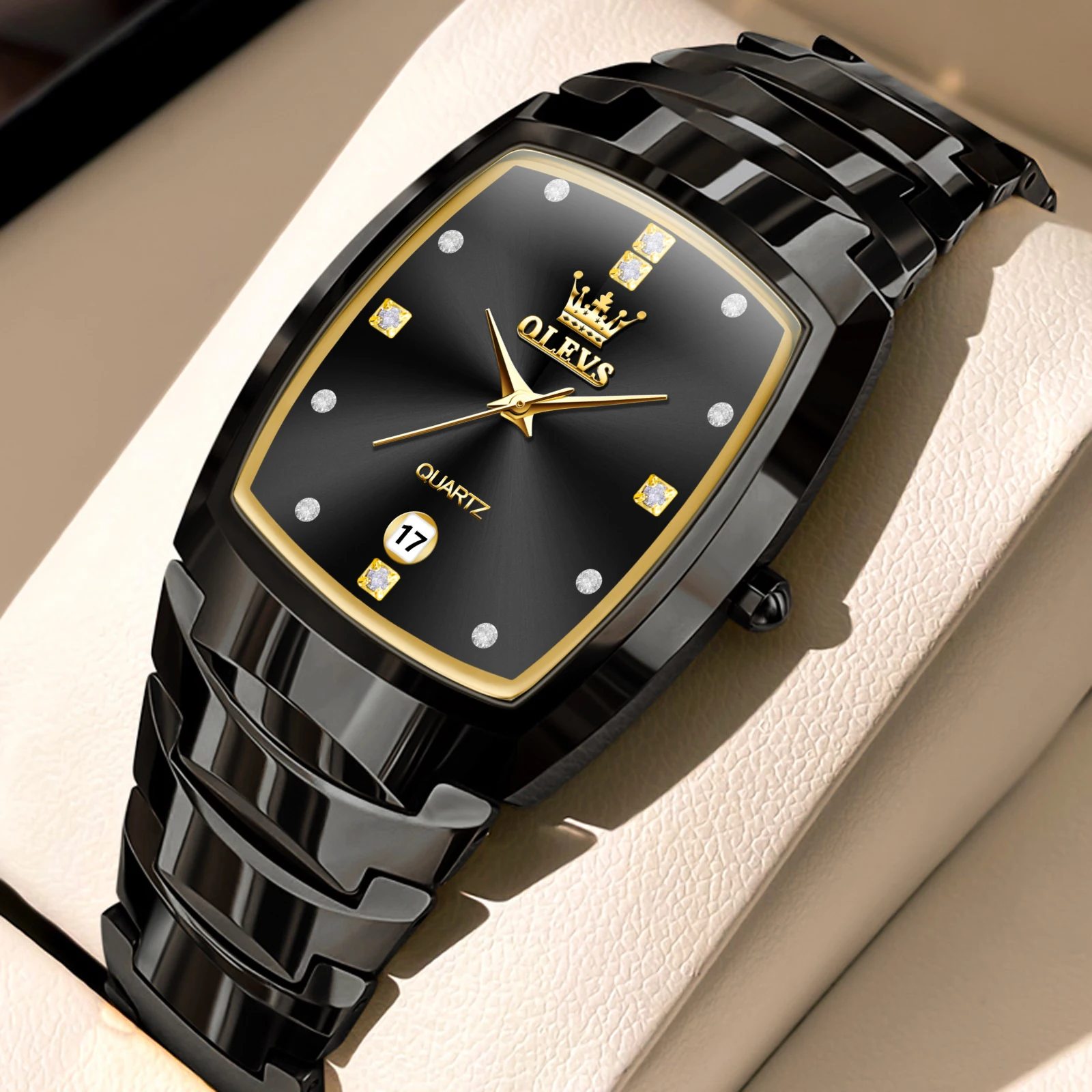 Men’s Luxury Watch – Stainless Steel, Waterproof, Diamond Calendar