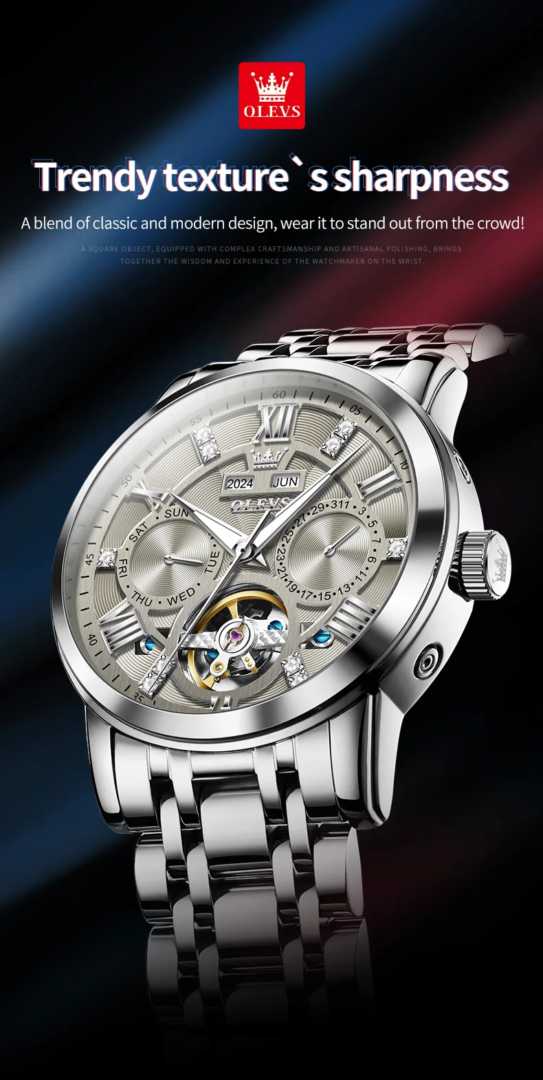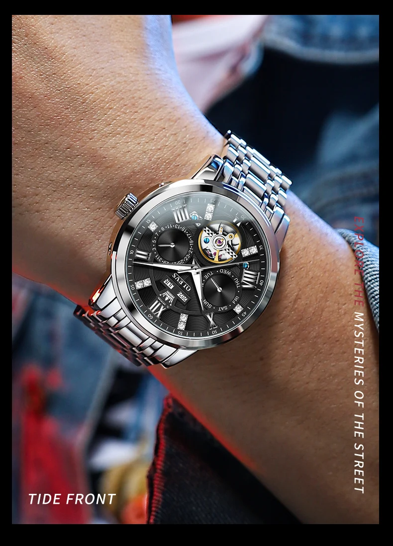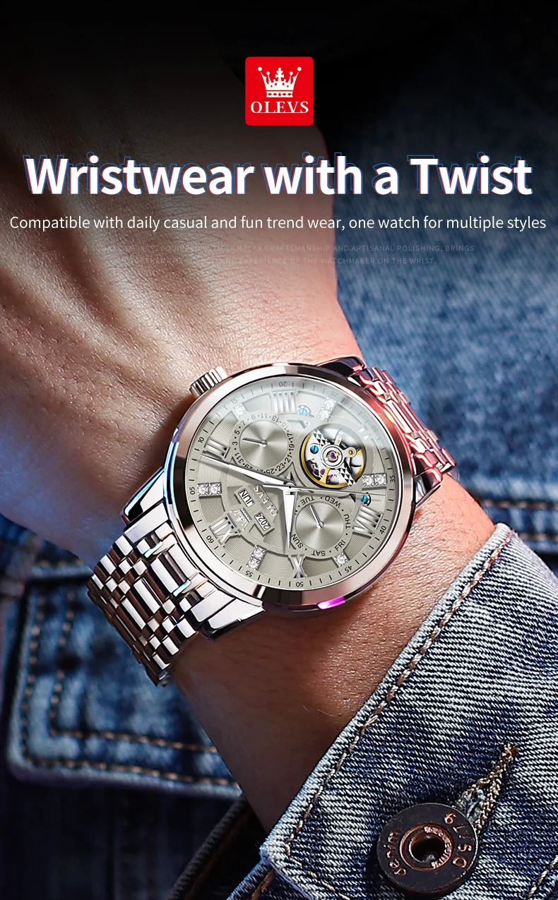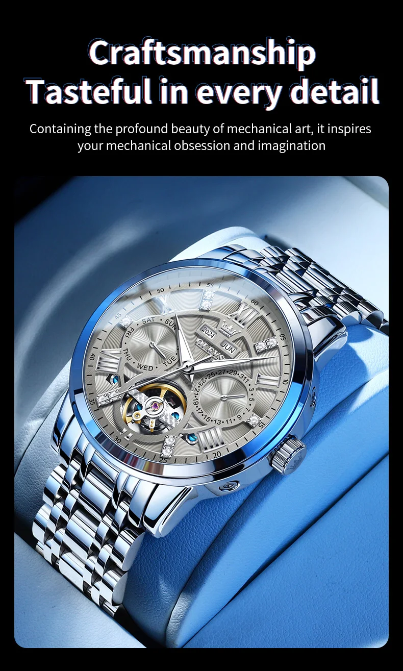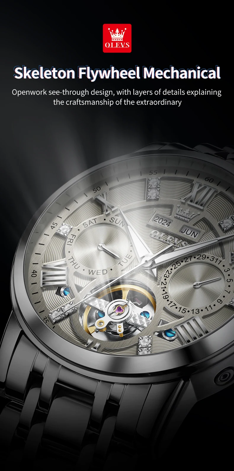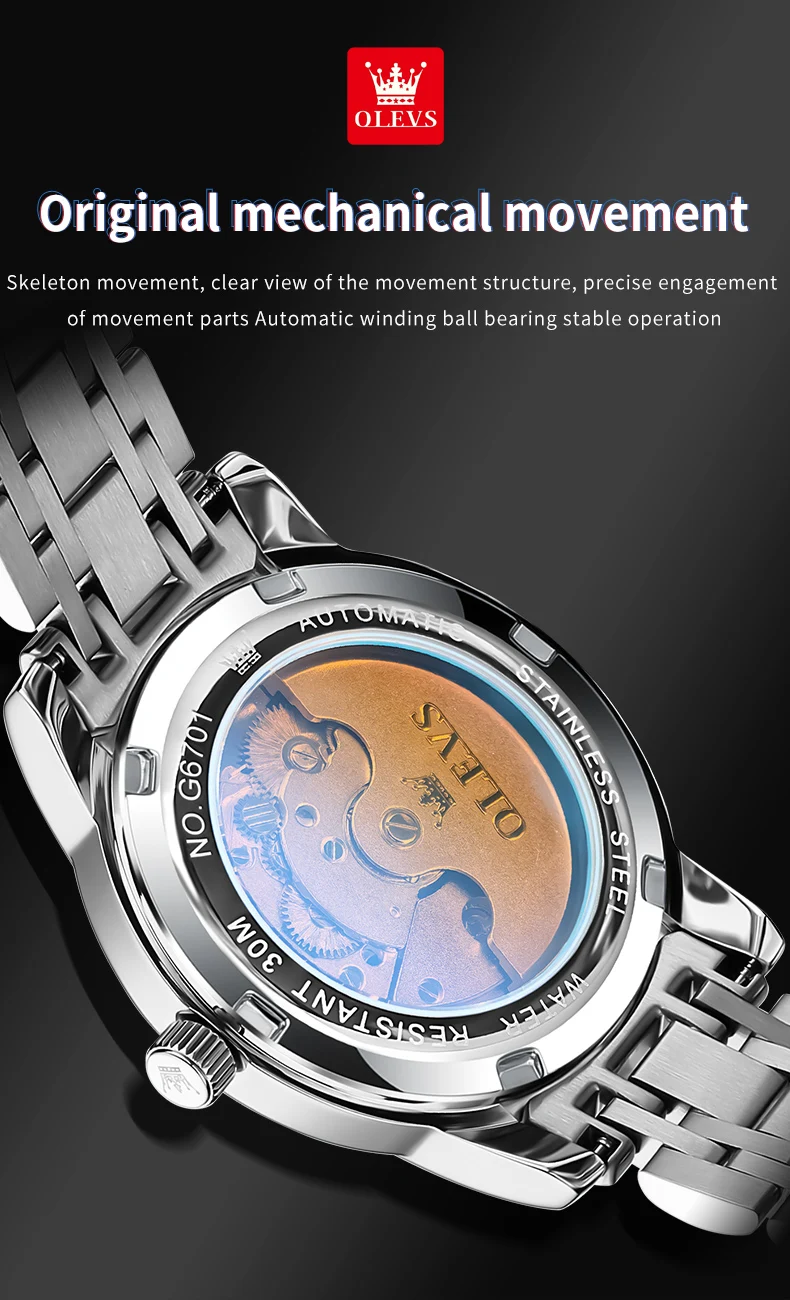OLEVS 6701 Men’s Mechanical Watch – Skeleton, Diamond, Waterproof