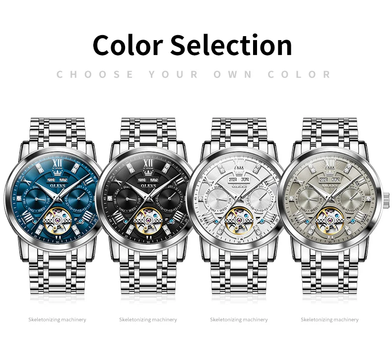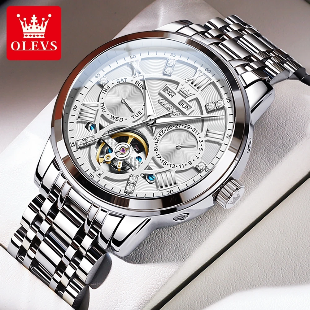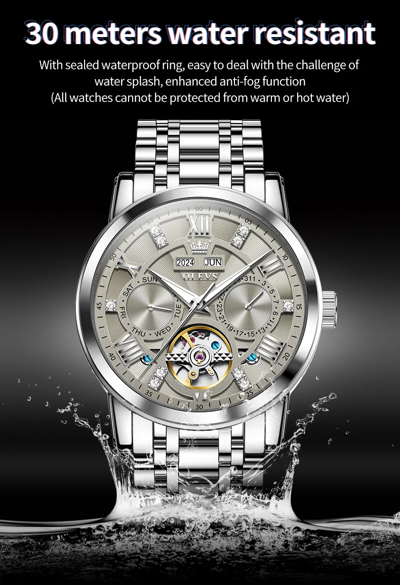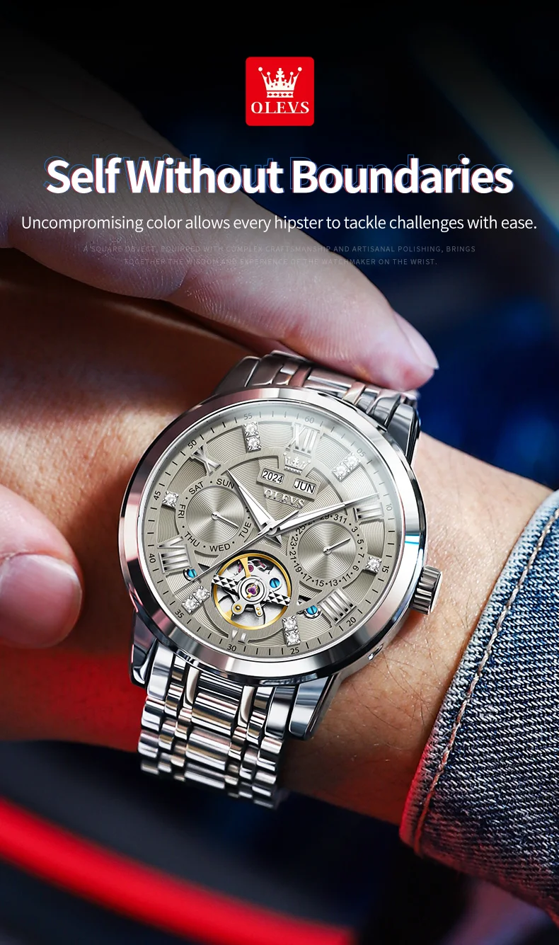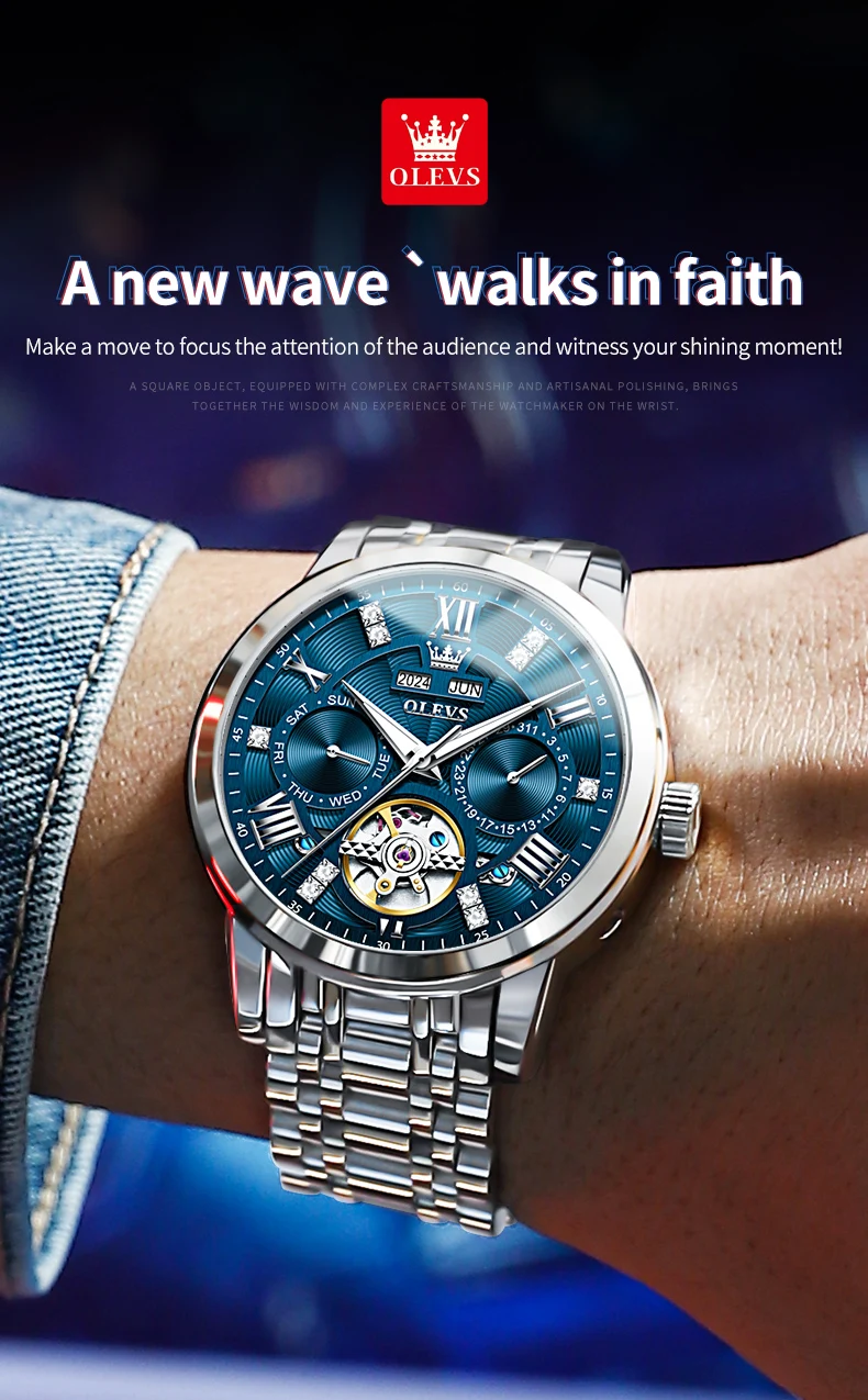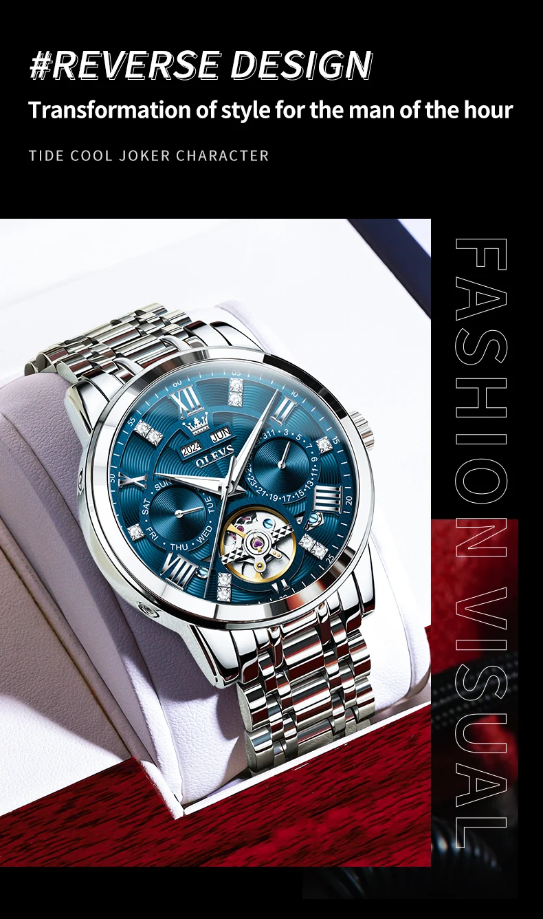 OLEVS 6701 Men’s Mechanical Watch – Skeleton, Diamond, Waterproof