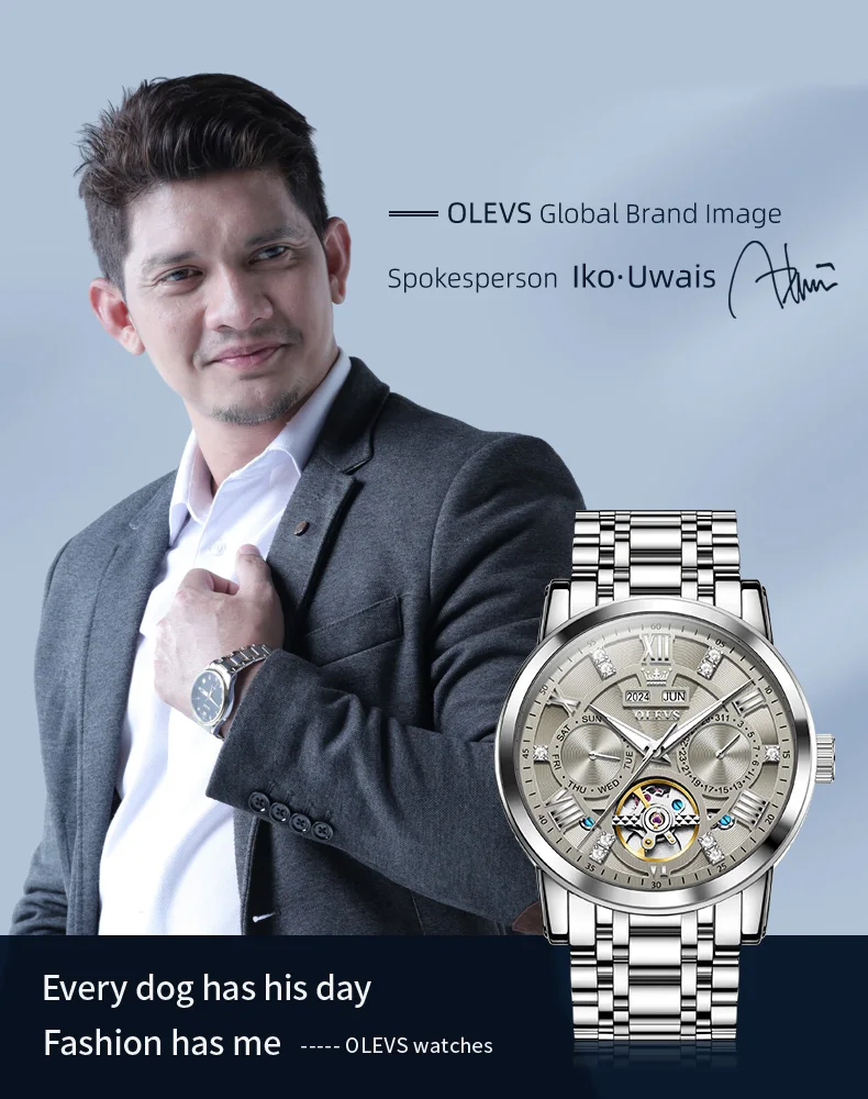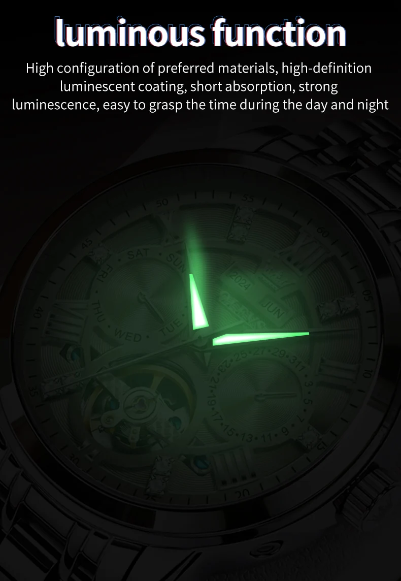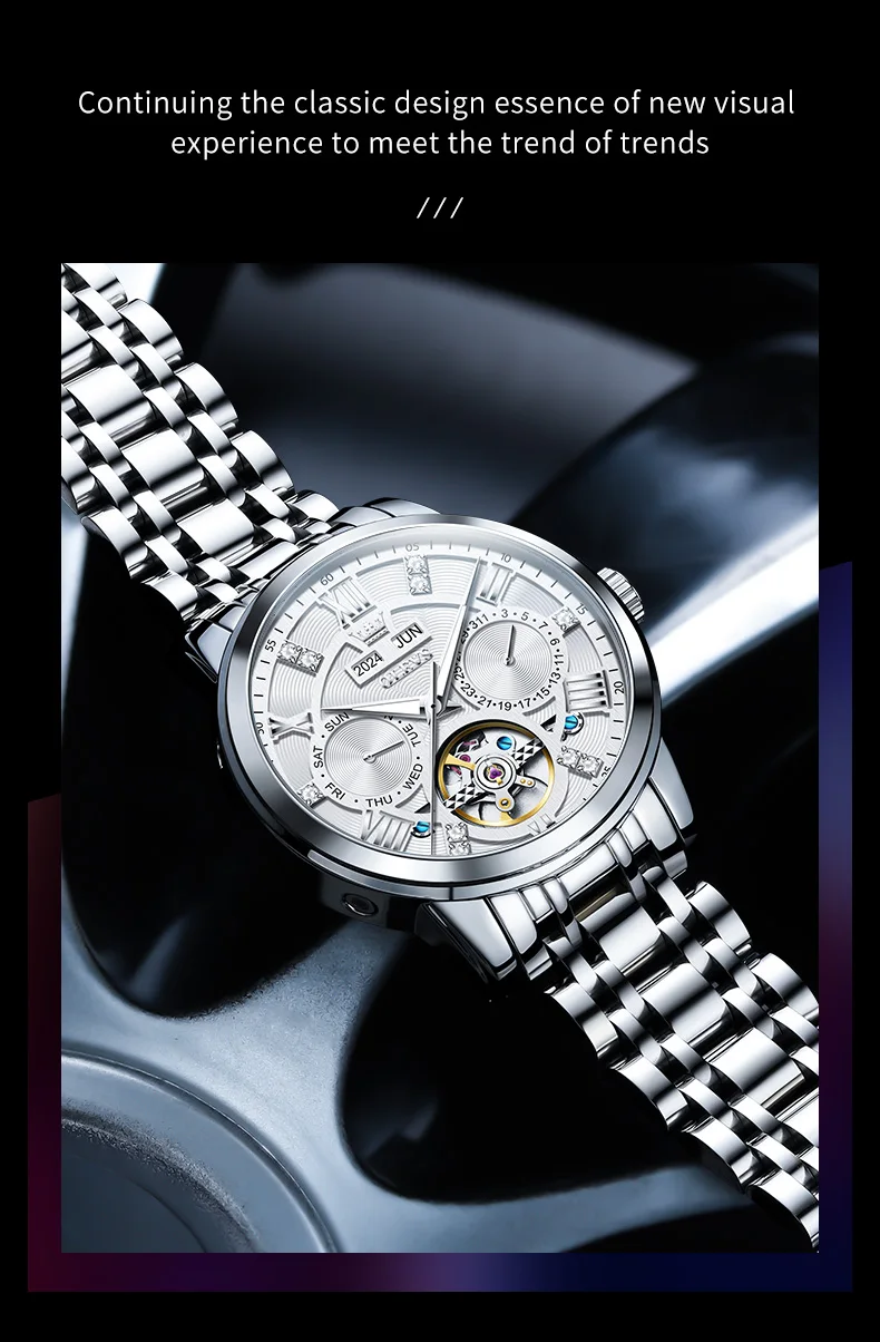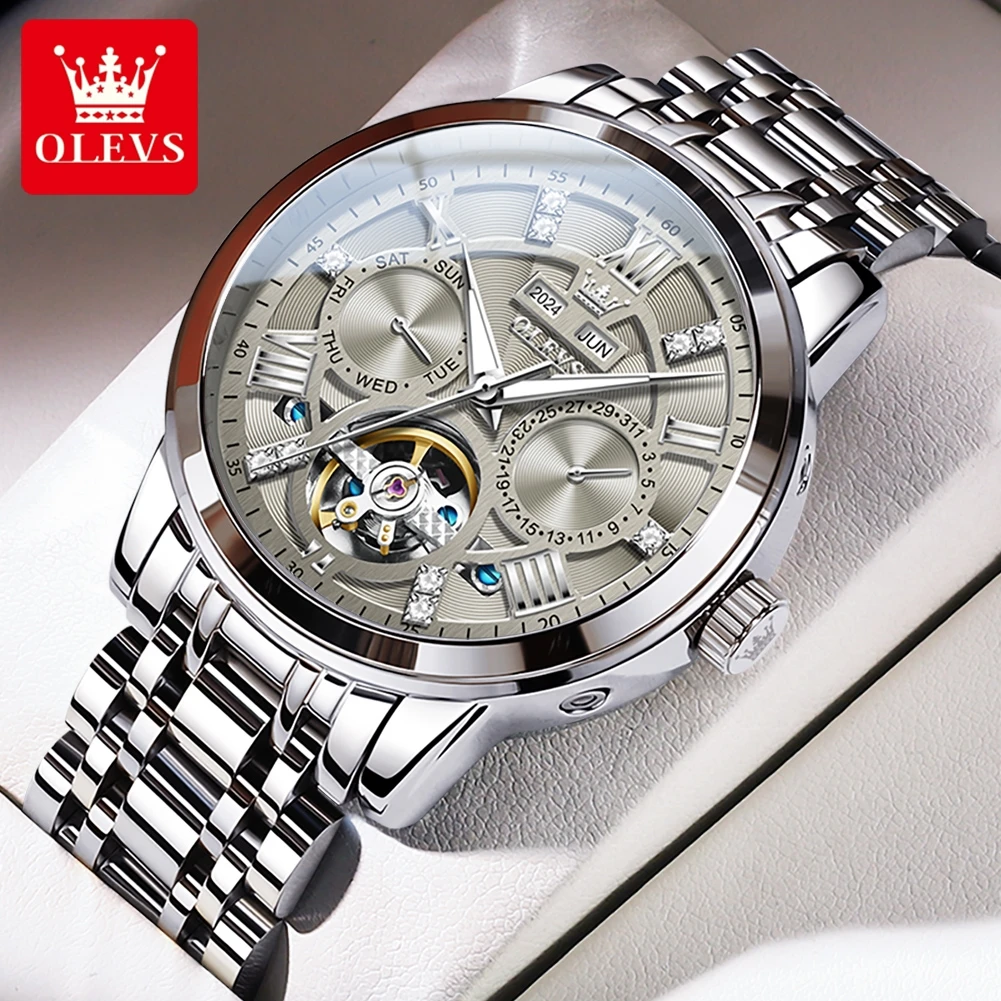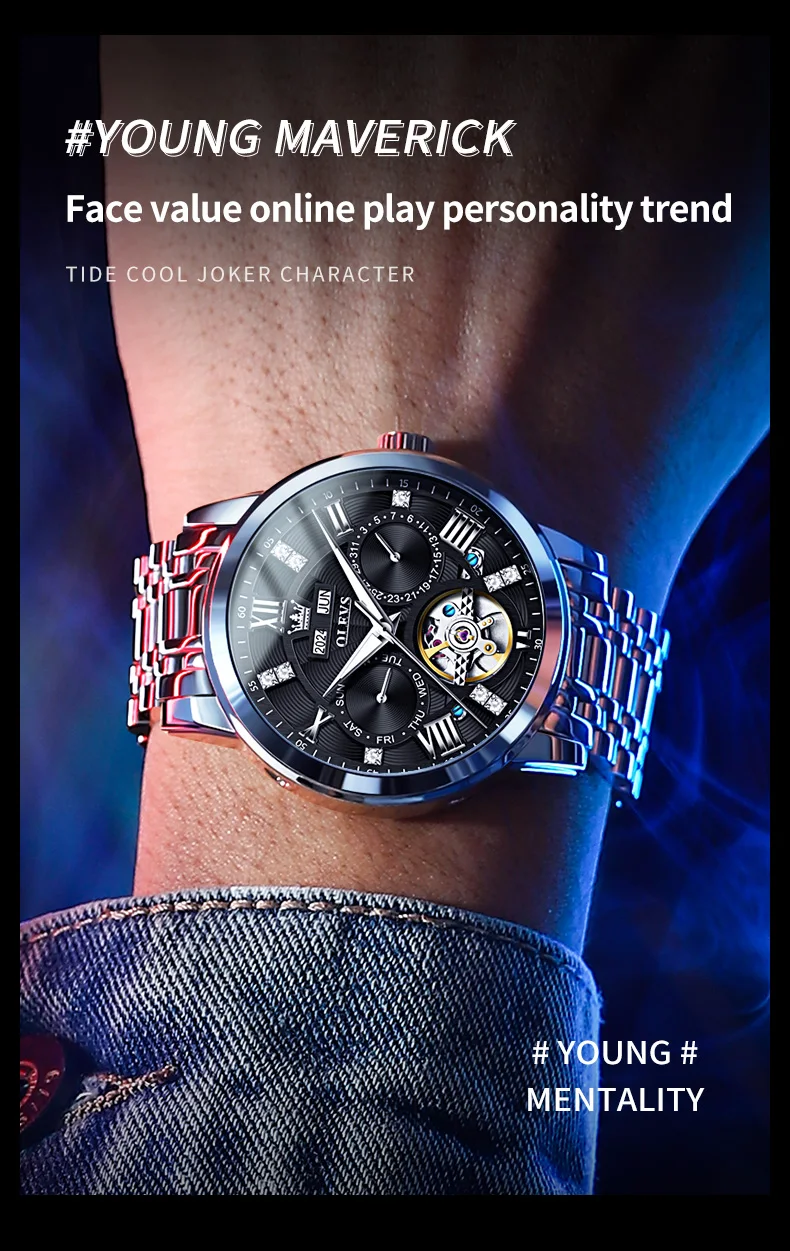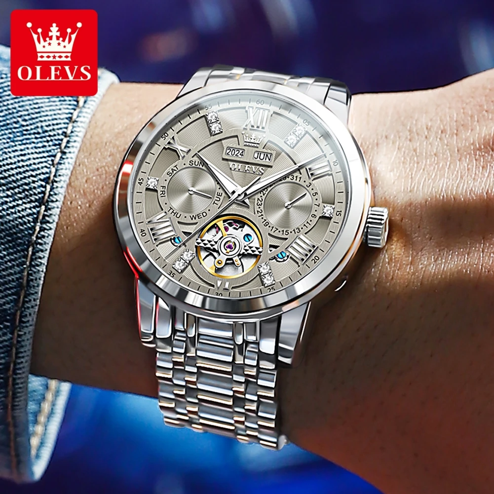 OLEVS 6701 Men’s Mechanical Watch – Skeleton, Diamond, Waterproof