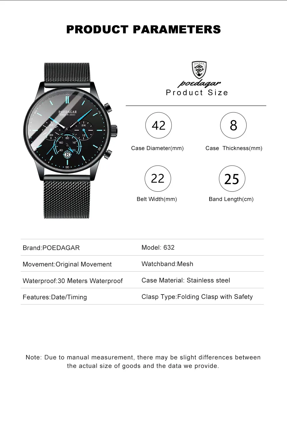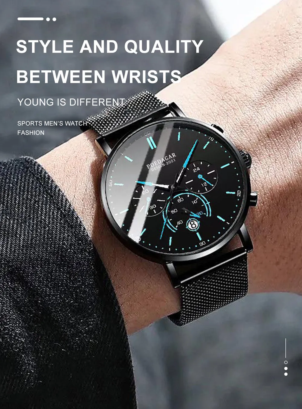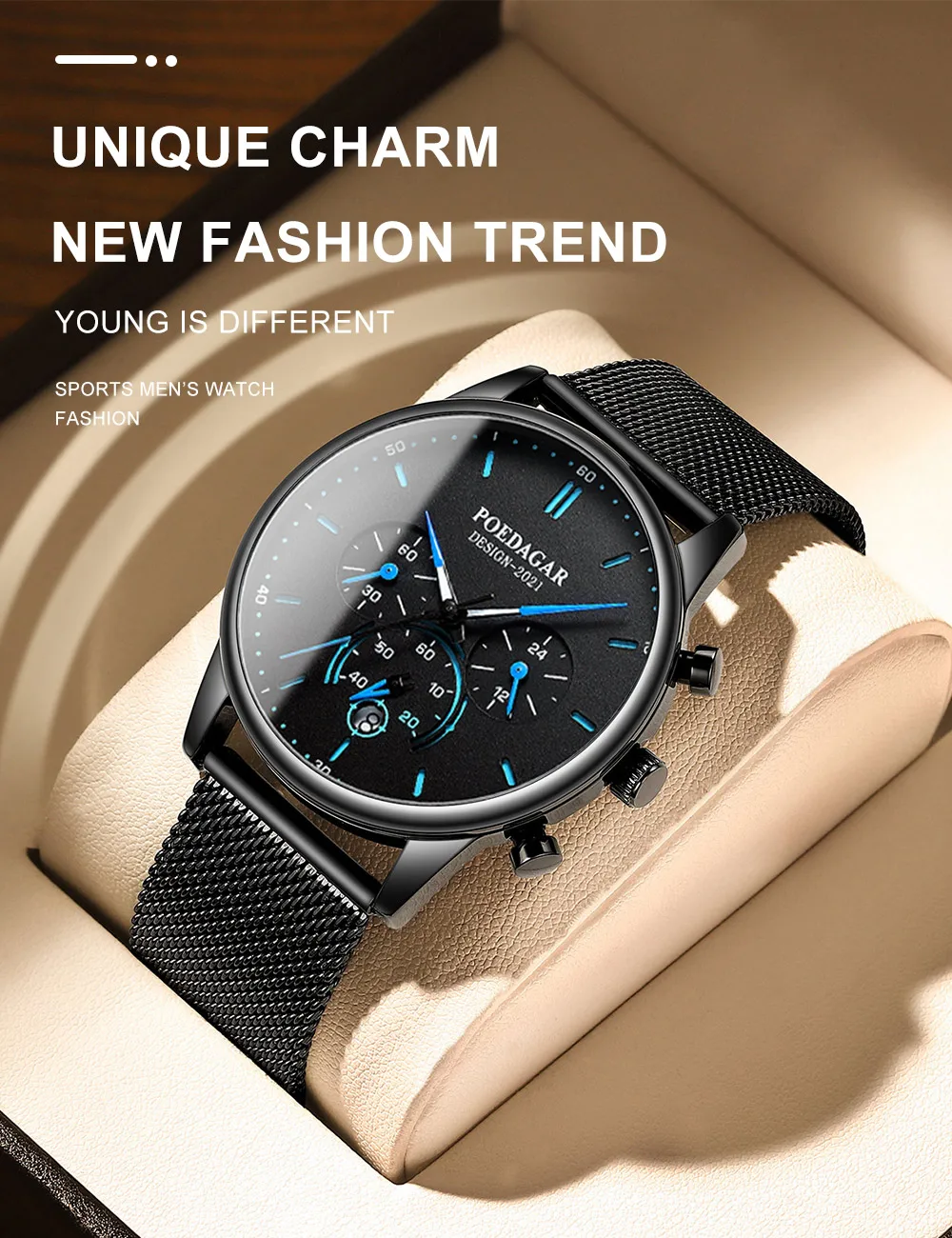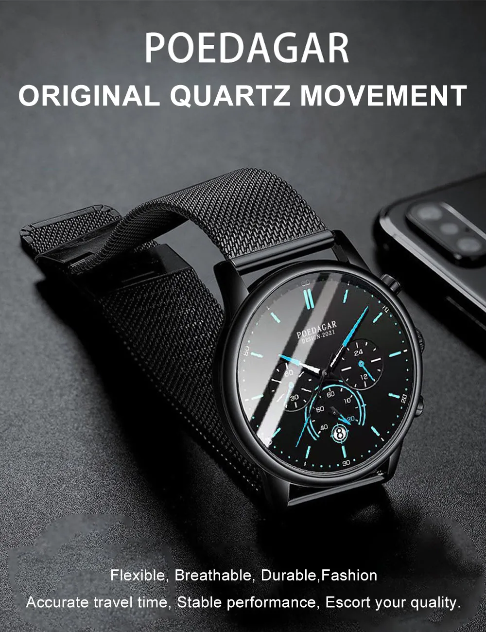 Be the first to review “POEDAGAR Men’s Fashion Watch – Chronograph, Mesh Strap, Waterproof”