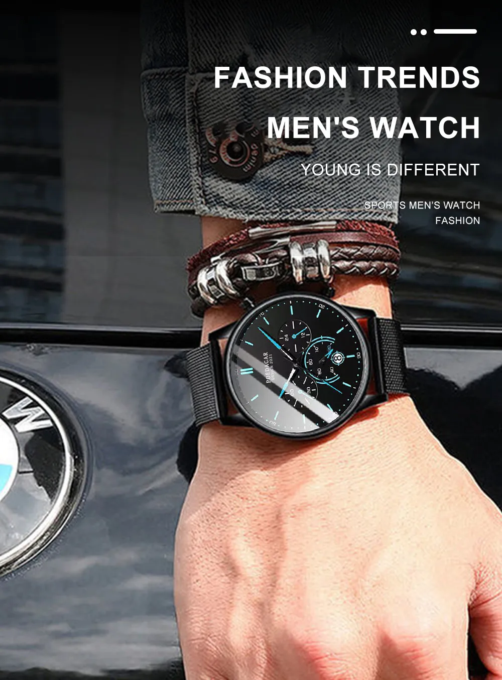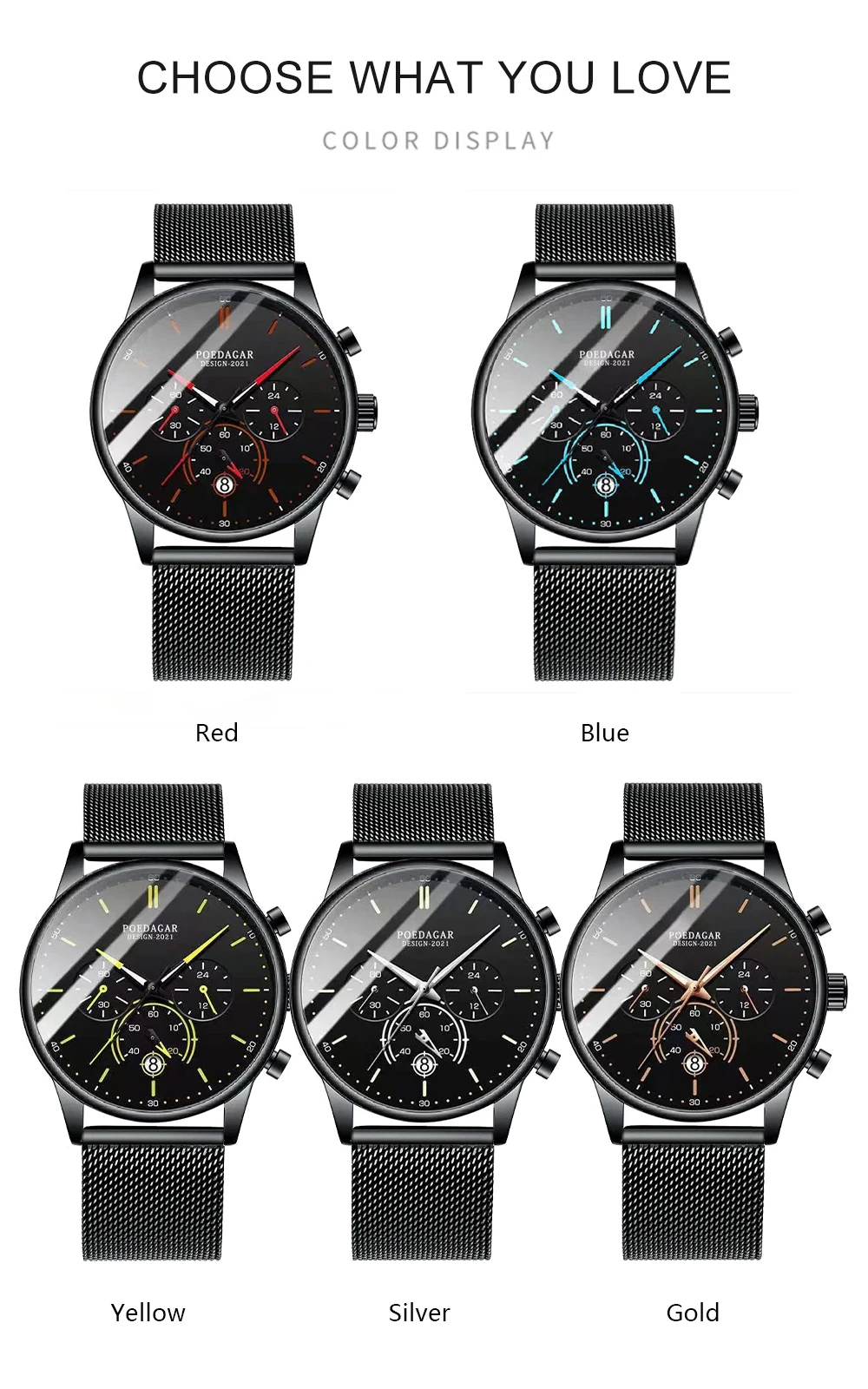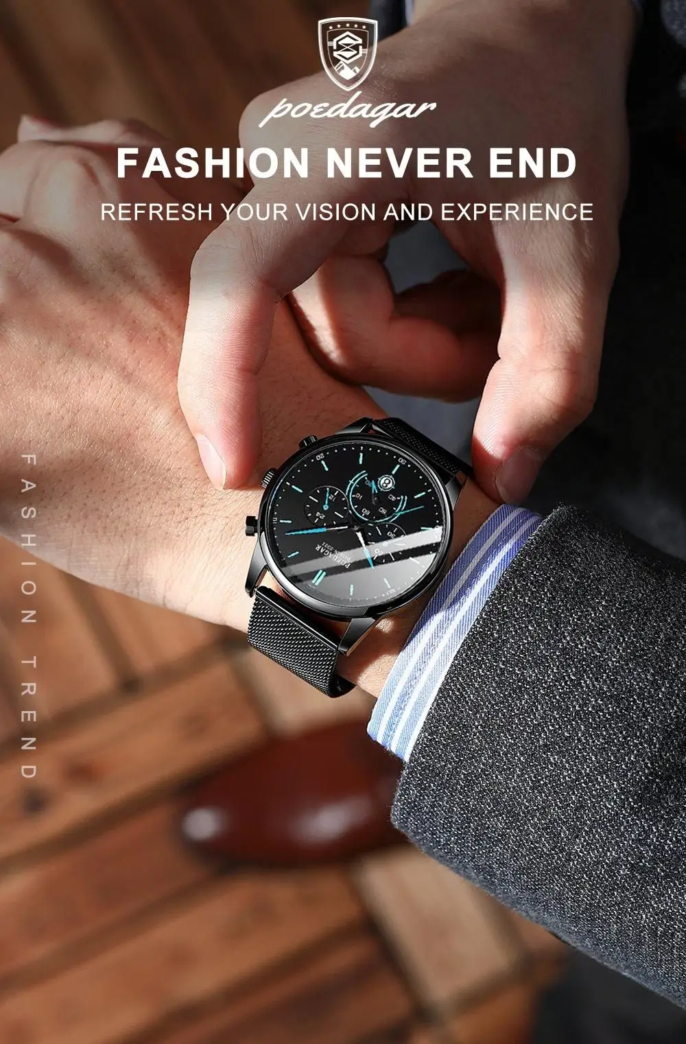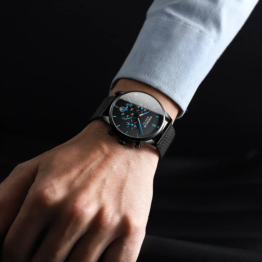 POEDAGAR Men’s Fashion Watch – Chronograph, Mesh Strap, Waterproof