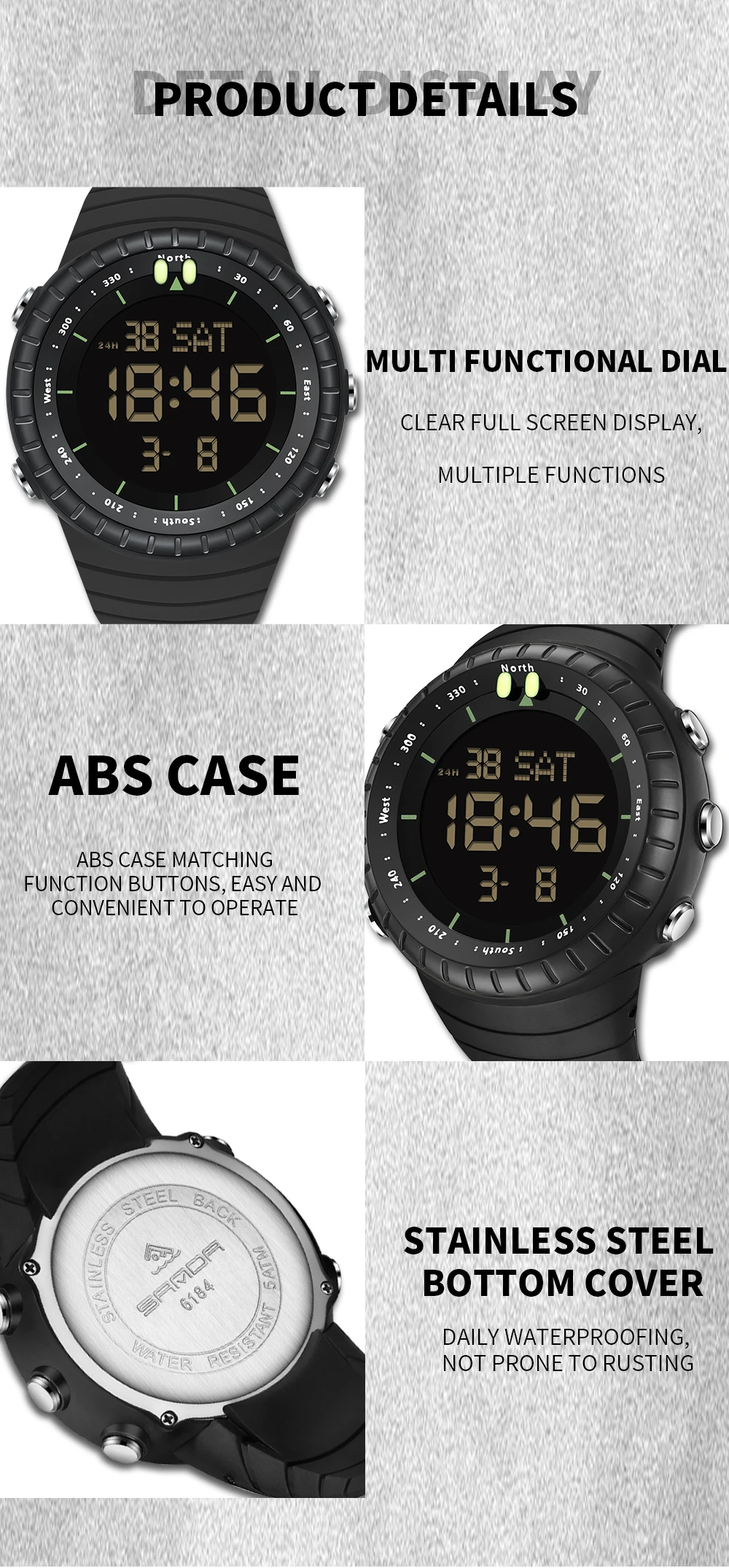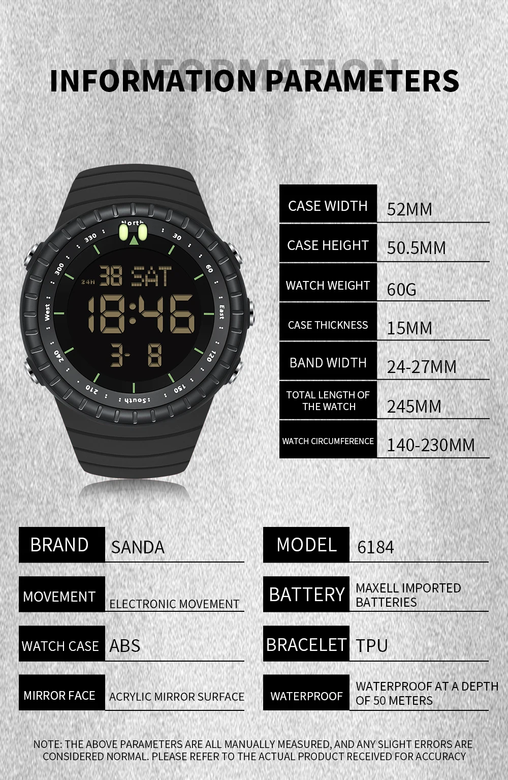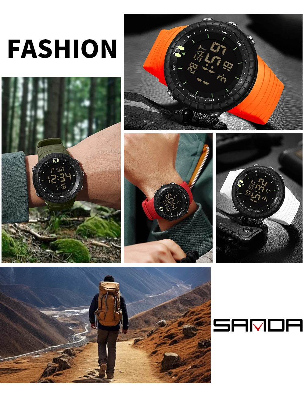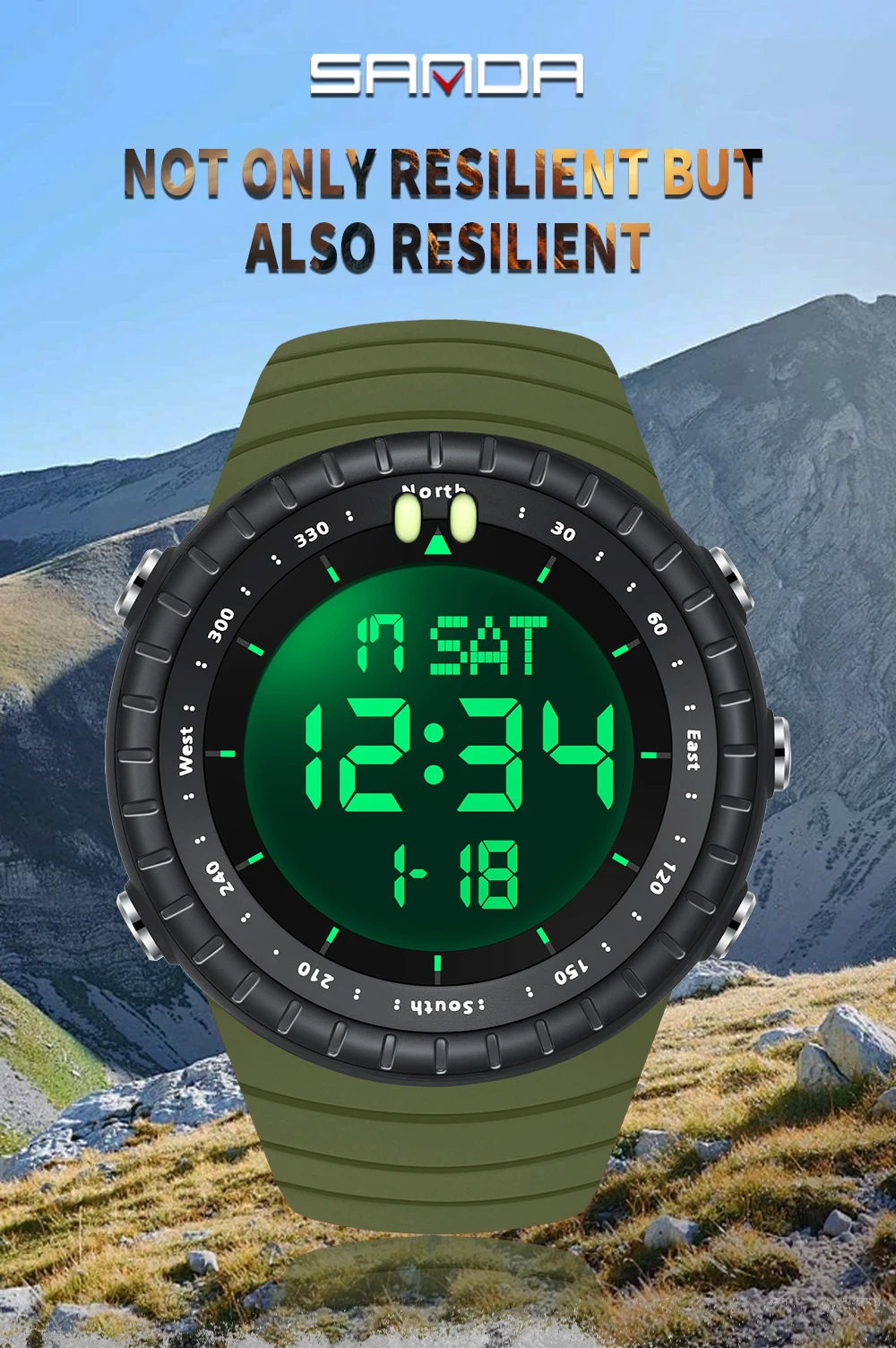 SANDA Men’s Sports Watch – LED Digital, Military Style, Waterproof