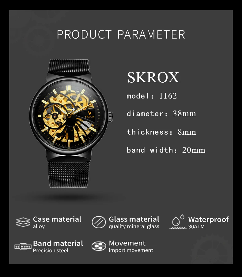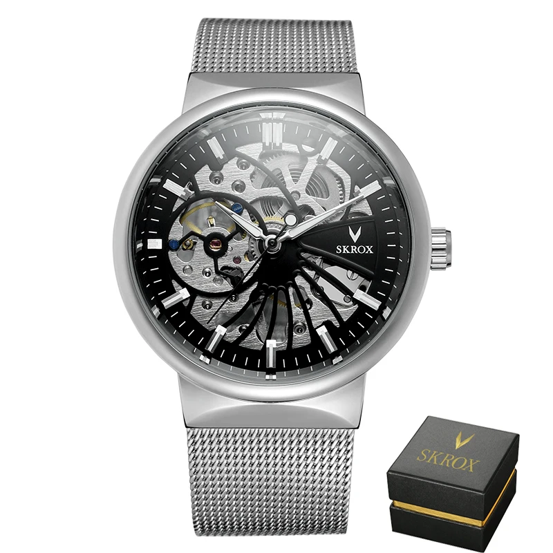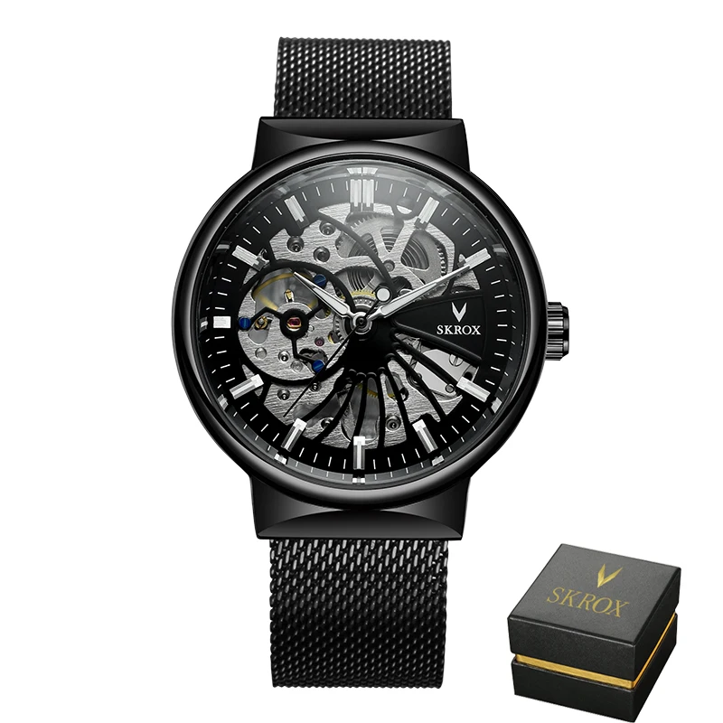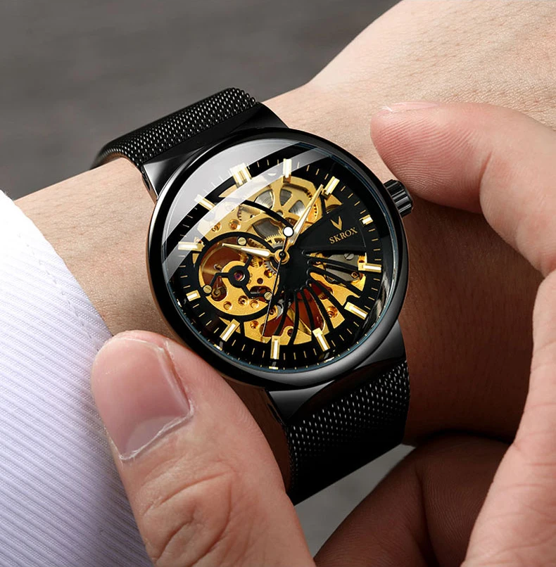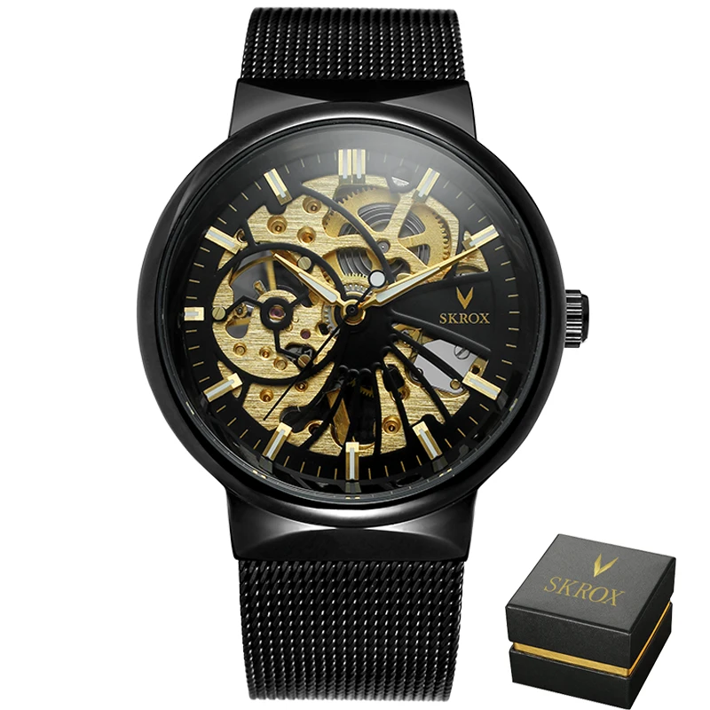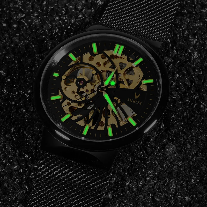 SKROX Vintage Skeleton Watch – Manual Mechanical, Luminous Dial