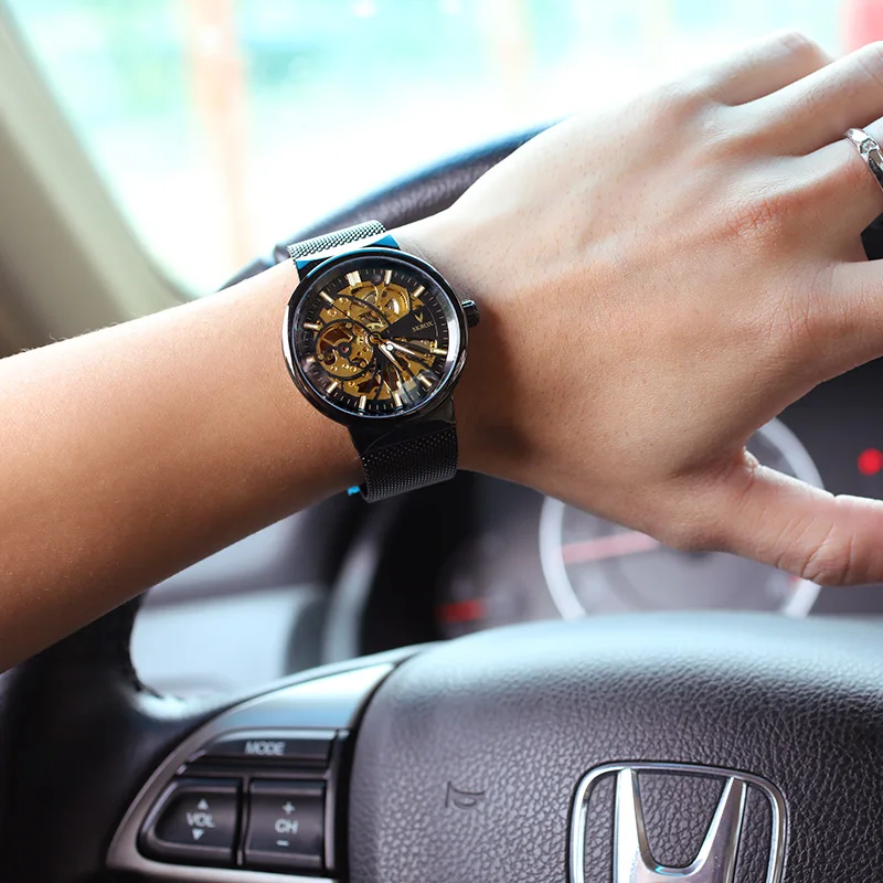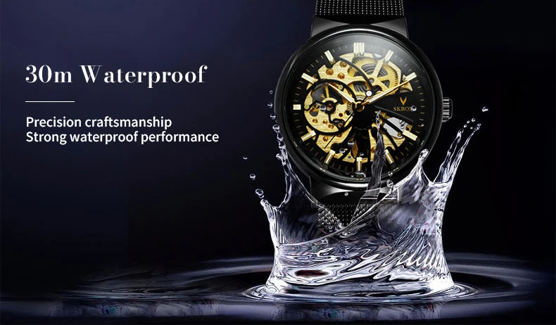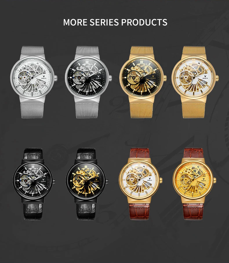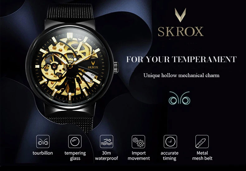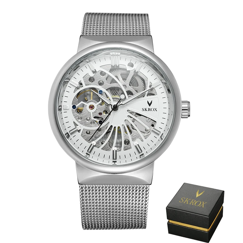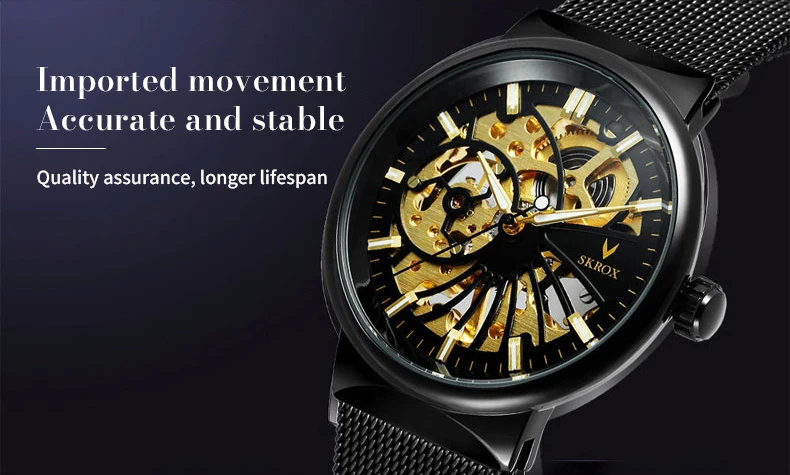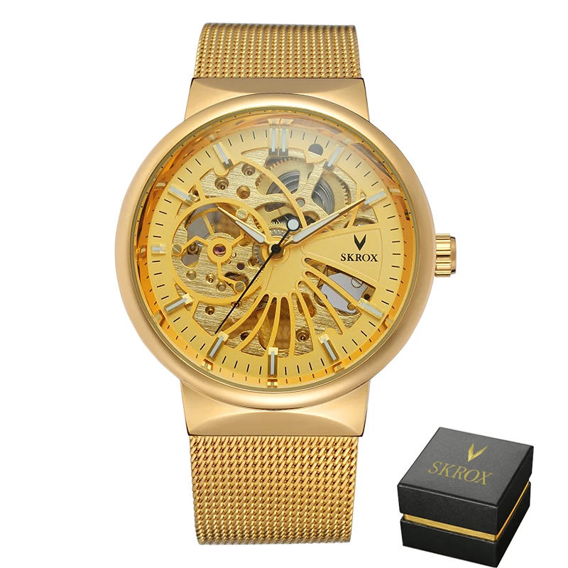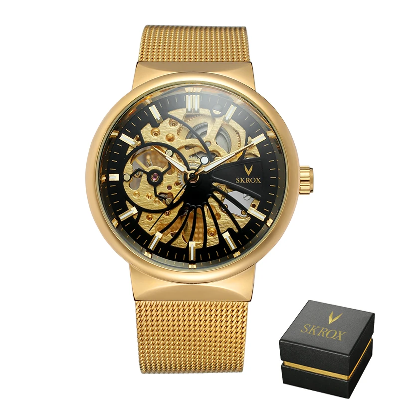 SKROX Vintage Skeleton Watch – Manual Mechanical, Luminous Dial