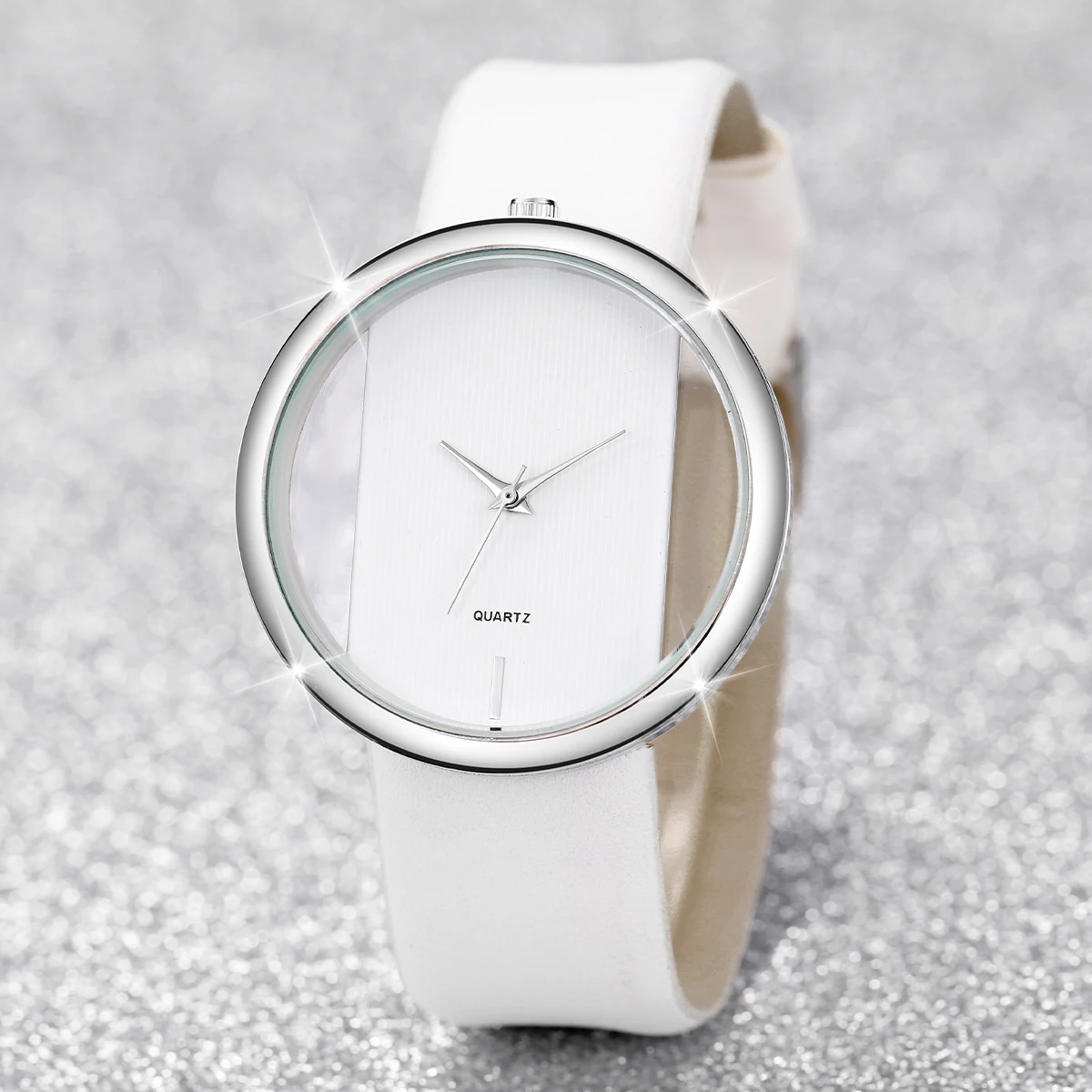 Women’s Fashion Hollow Dial Leather Band Quartz Watch